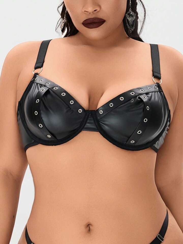 Grunge Punk Plus Size Dark Punk Bandeau Bra With Eyelets, Steel Rings And Invisible Straps