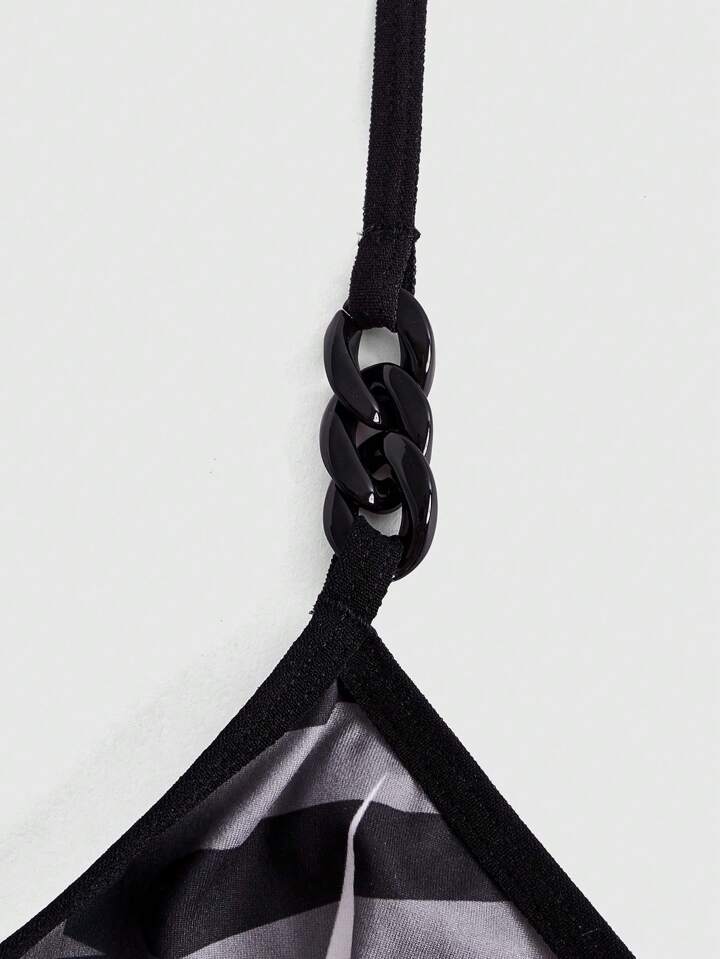 Grunge Punk Plus Striped & Star Print Tie Backless Halter Bra