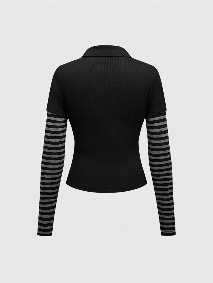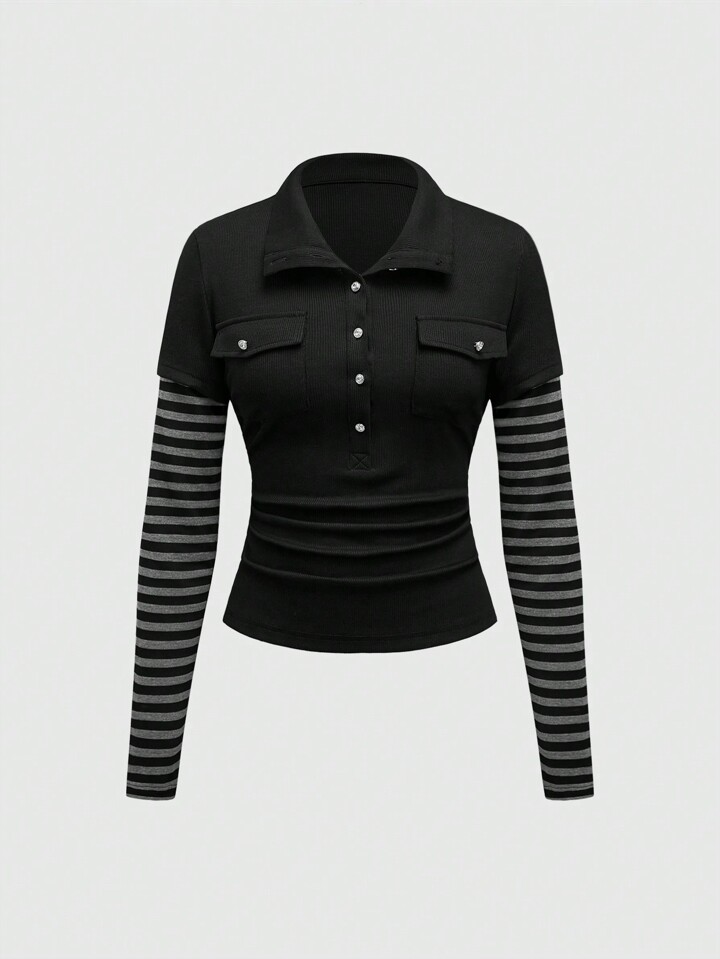 Grunge Punk Punk Casual Edgy Vintage Diamond Button Splice Striped Long Sleeve Women Shirt