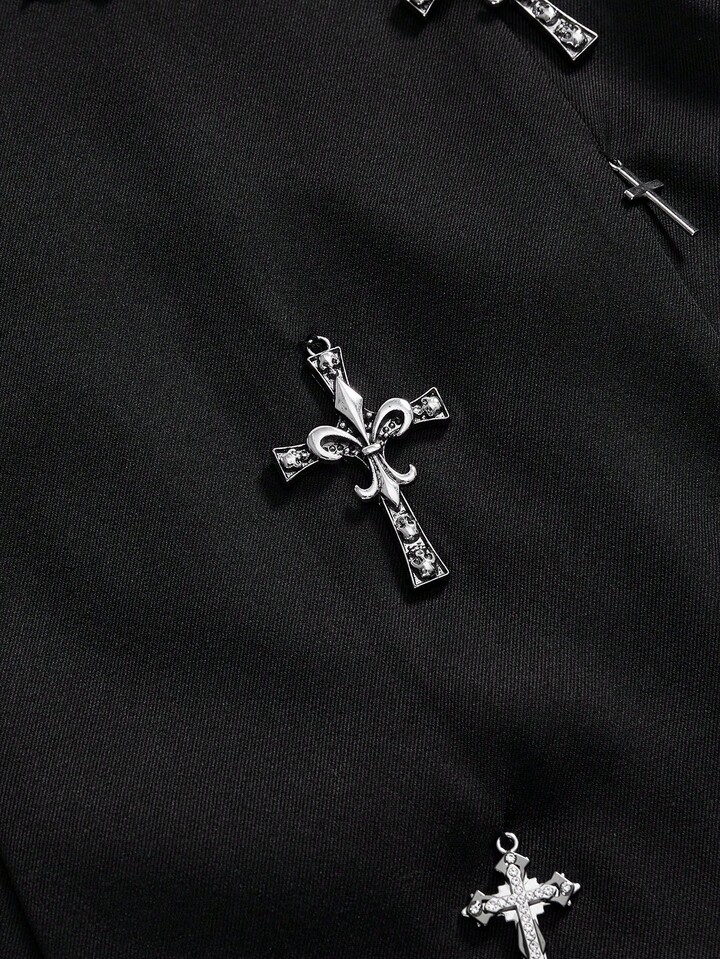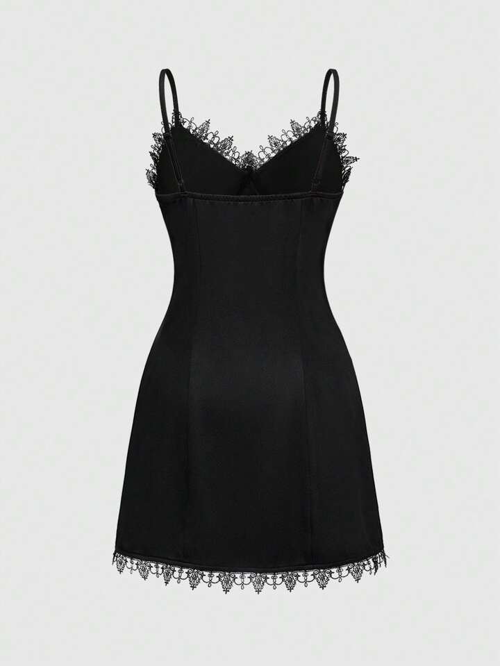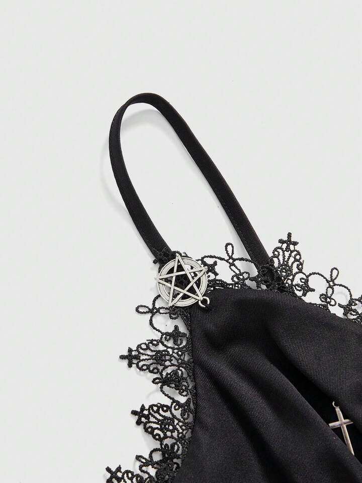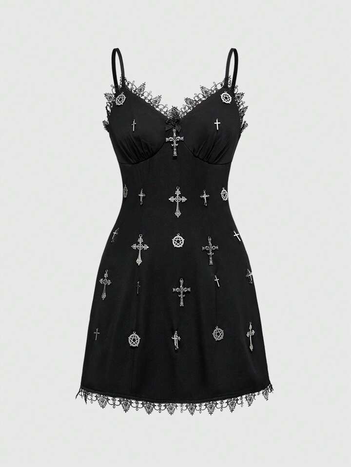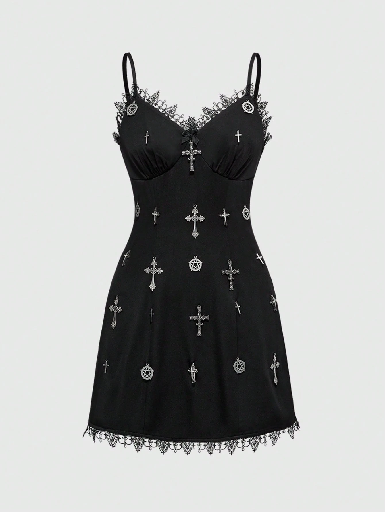 Grunge Punk Punk Cross Pendant Contrast Lace Bodycon Mini Dress For Women