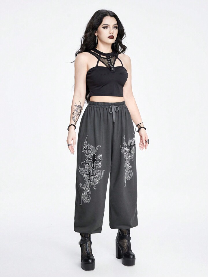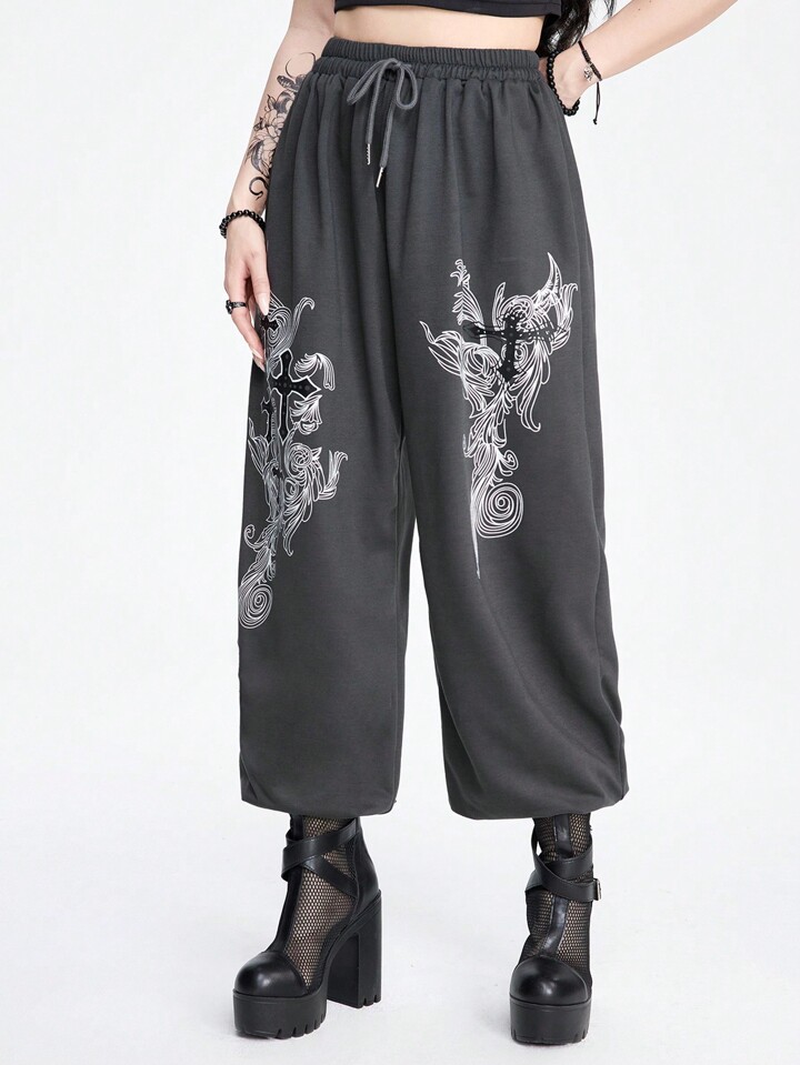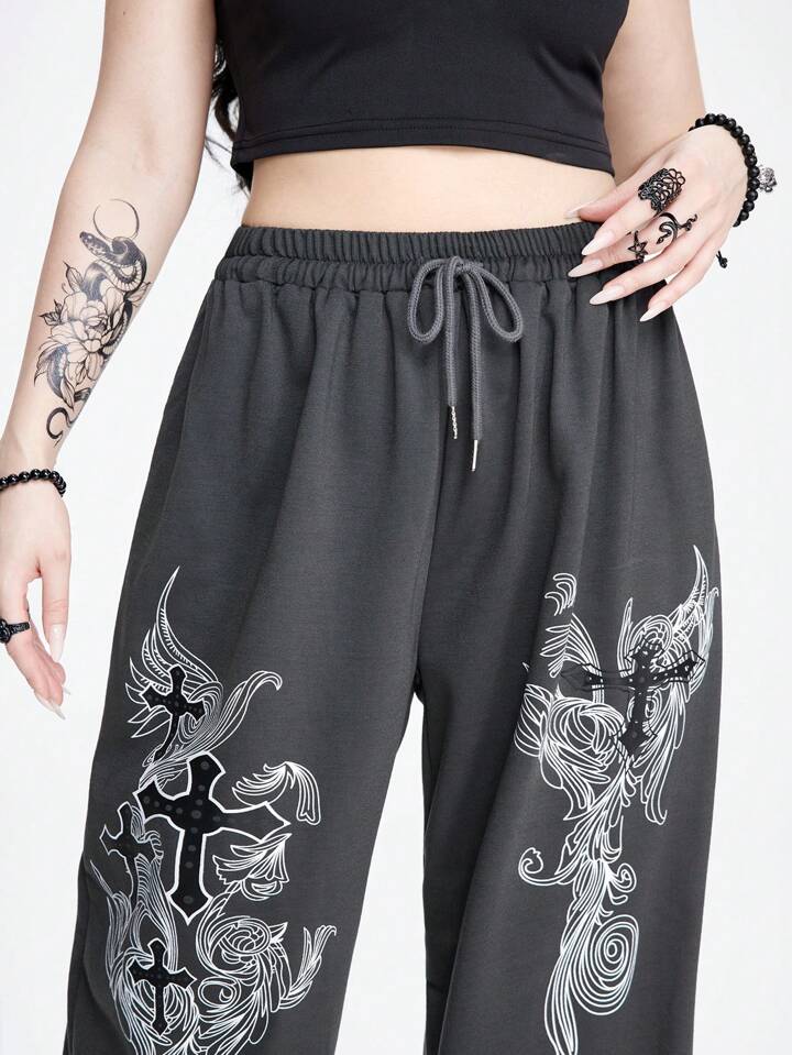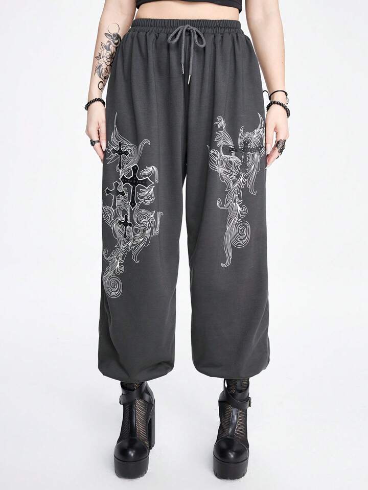 Grunge Punk Punk Style Cross & Vine Pattern Women's Long Pants Or Leggings