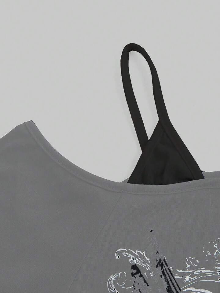 Grunge Punk Punk Style Wing Pattern Print With Rhinestones Loose Off-Shoulder Women's T-Shirt, School