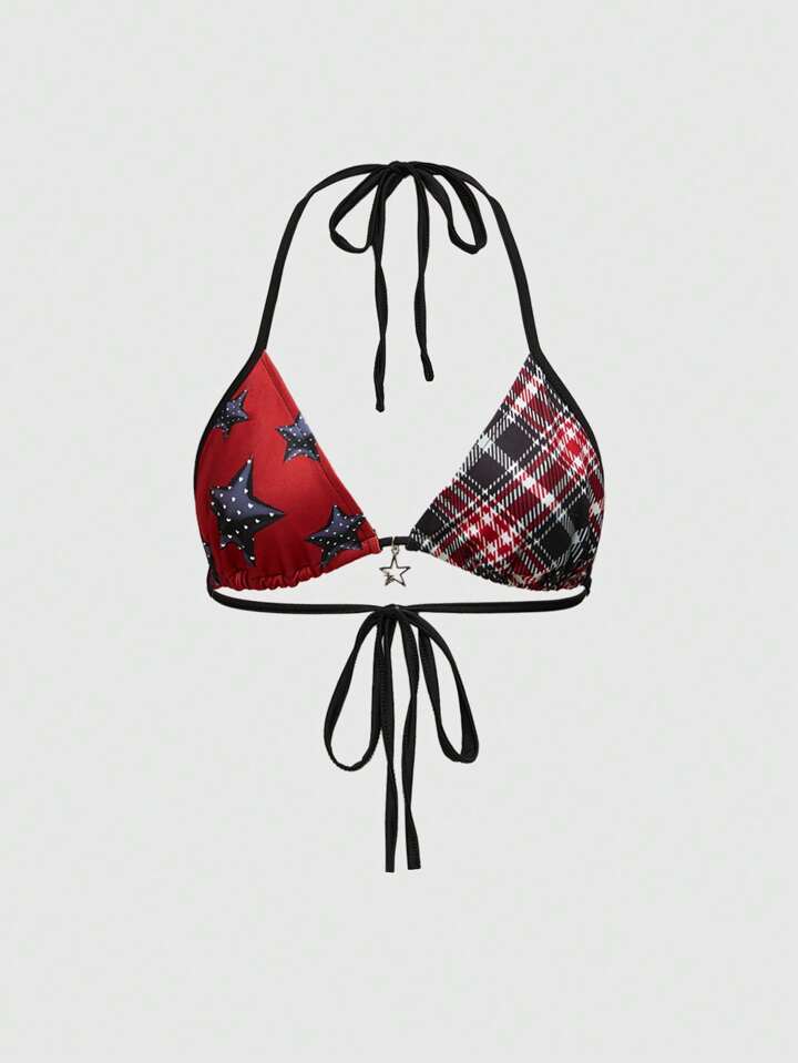 Grunge Punk Punk Y2K Baddie Star Plaid Bra Crop Top, Academic, Back To School Season