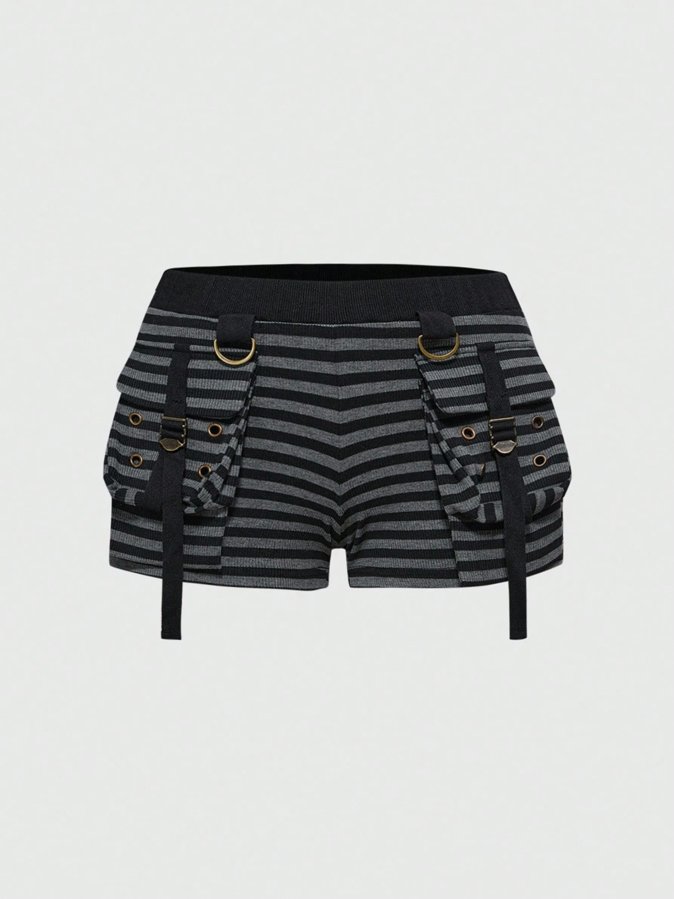 Grunge Punk Retro Punk Black & Gray Striped 3D Pocket Y2K Babe Plus Size Shorts