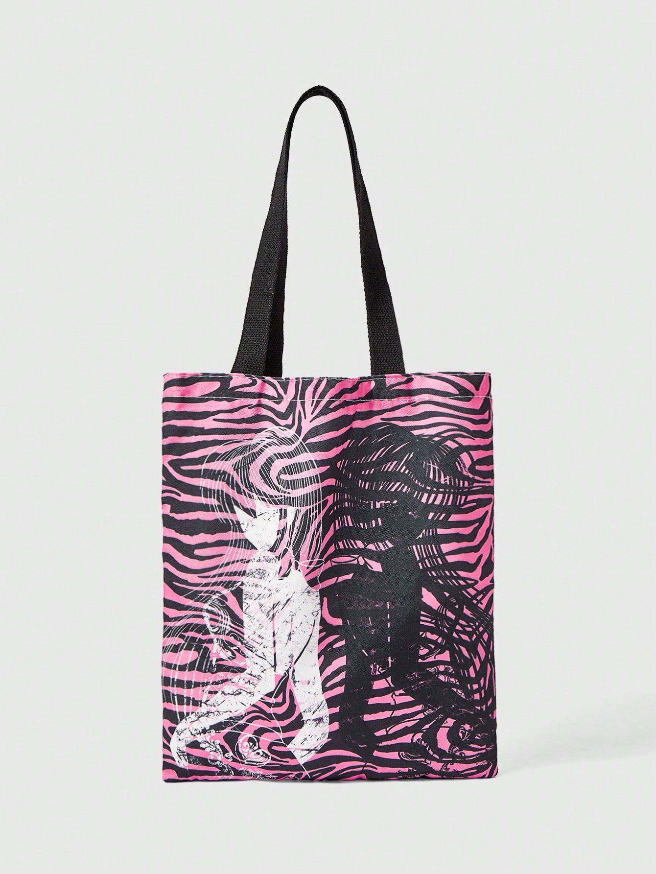 Grunge Punk Reusable Canvas Tote Bag With Allover Print Eye/Moon/Star Pattern, Shoulder Bag Design Suitable For Shopping