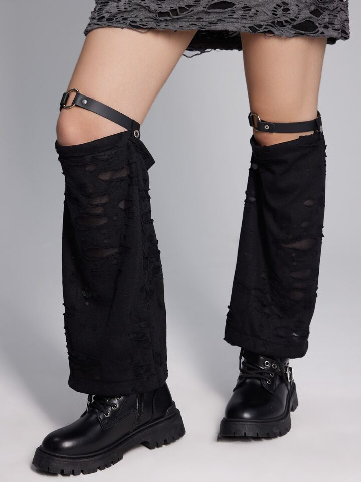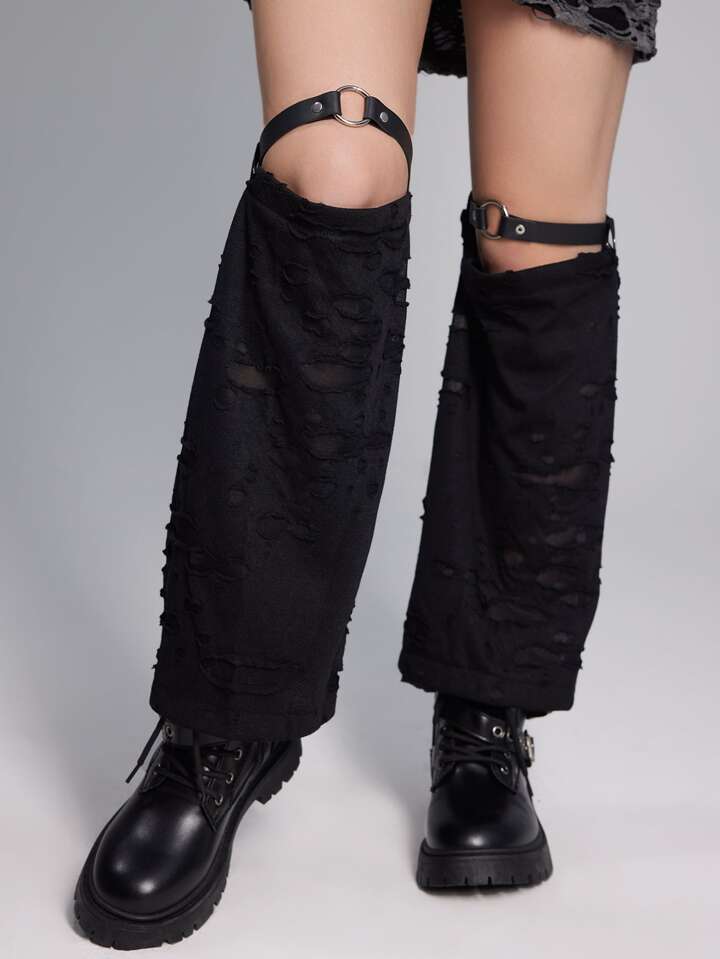 Grunge Punk Ring Linked Ripped Loose Leg Warmers