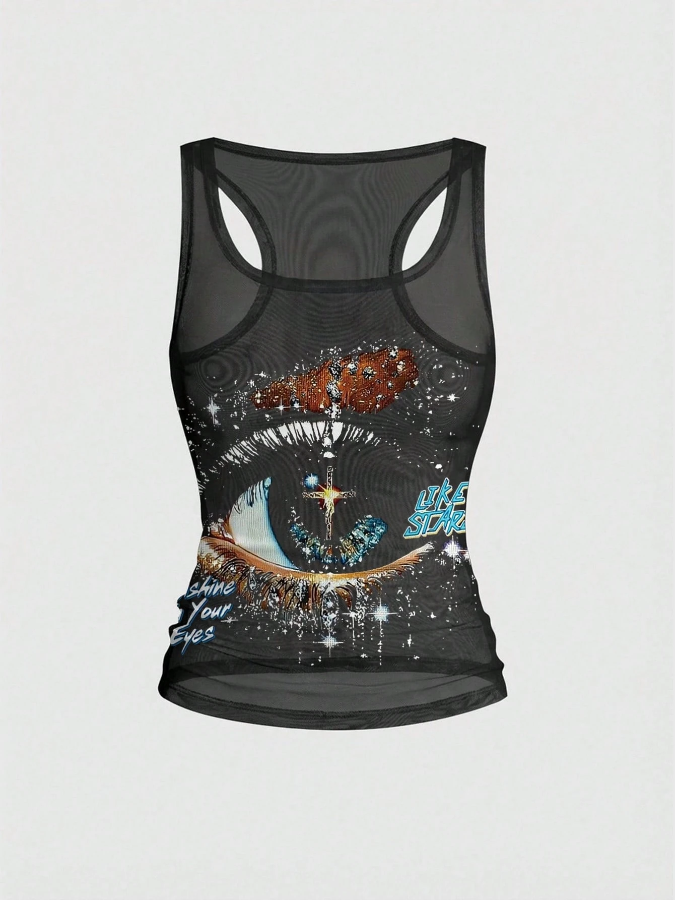Grunge Punk Sexy Eye Punk Sheer Mesh Women Tank Top