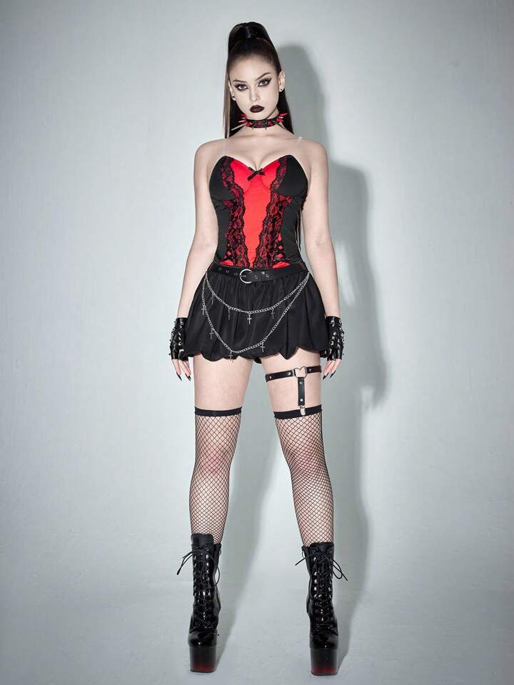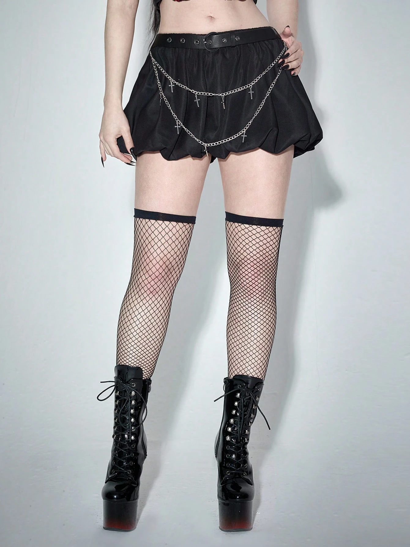 Grunge Punk Sexy Metal Chain Floral Pleated Super Mini Skirt (With Belt) Valentine's Day Skirt