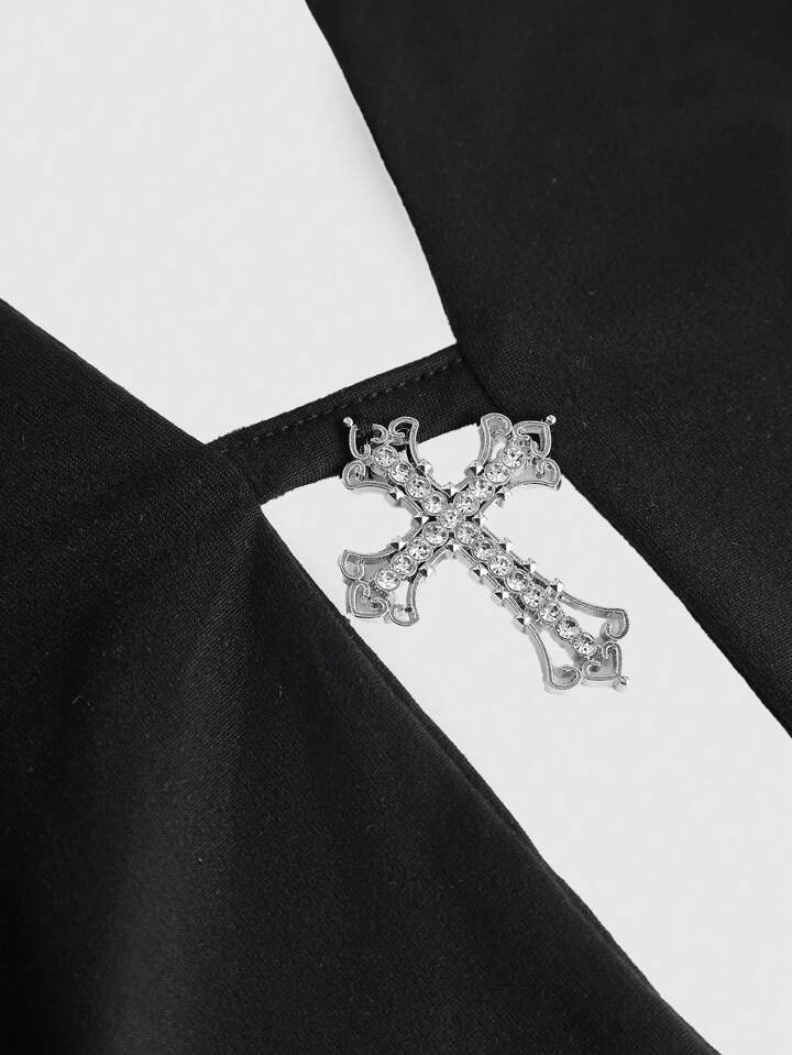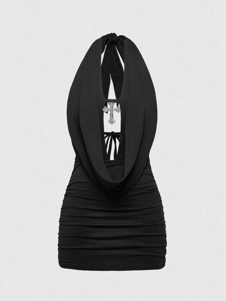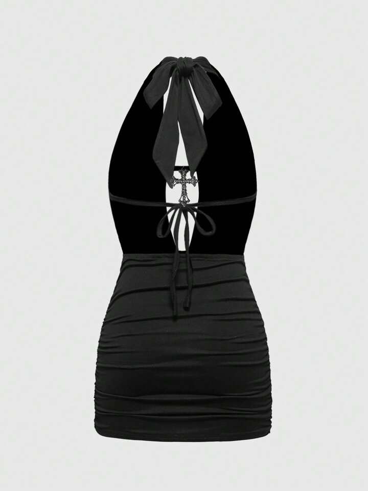 Grunge Punk Sexy Millennium Cross Pendant Halter Lace-Up Mini Dress For Women