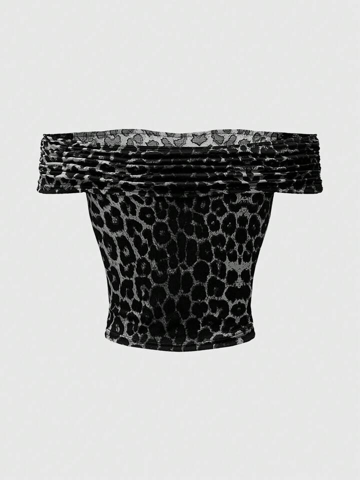 Grunge Punk Sexy Off-Shoulder Slim Fit Leopard Print Women T-Shirt - Retro Millennium School