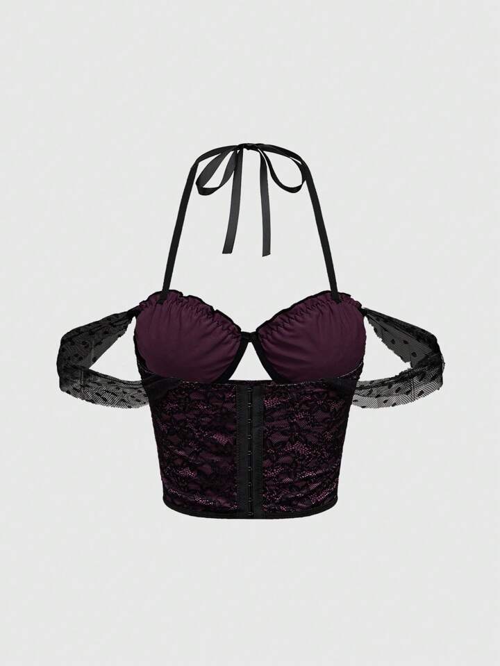 Grunge Punk Sexy Purple Lace Hollow Out Halter Top Graphic Tees Women Tops
