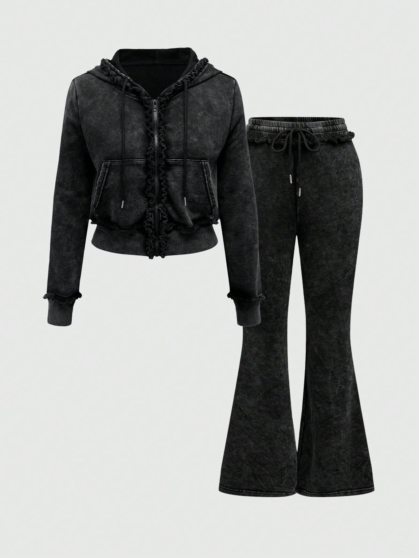 Grunge Punk Sexy Retro Vintage 2000s Punk Zipper Up Distressed Plus Size Women 2 Pieces Set