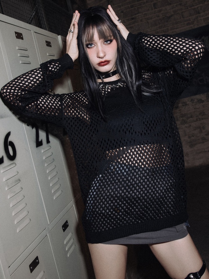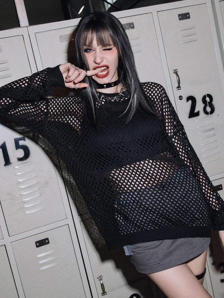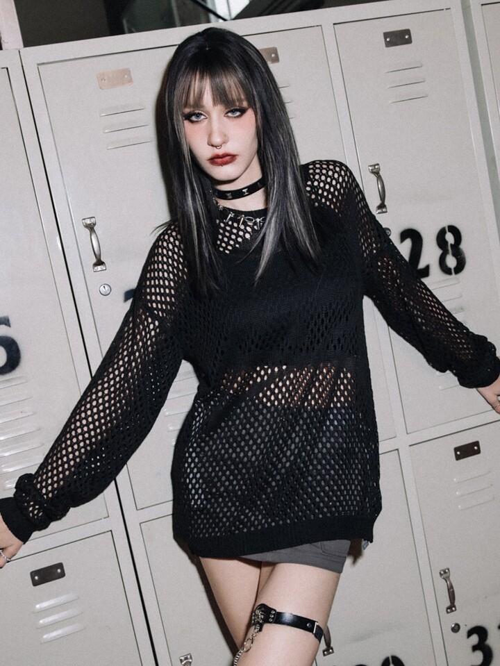 Grunge Punk Skeleton Pattern Drop Shoulder Sweater