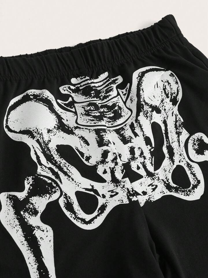 Grunge Punk Skeleton Print Cami Top & Biker Shorts