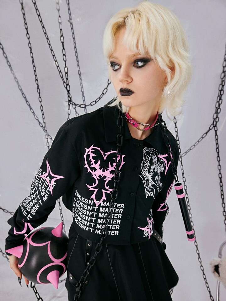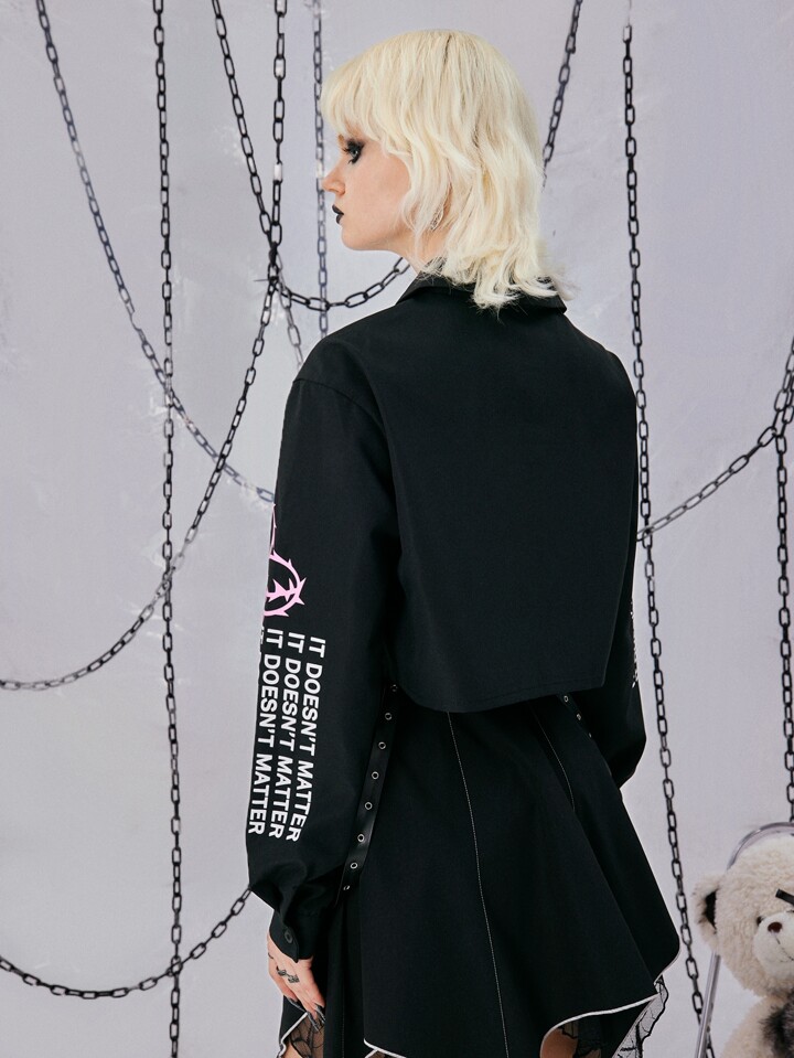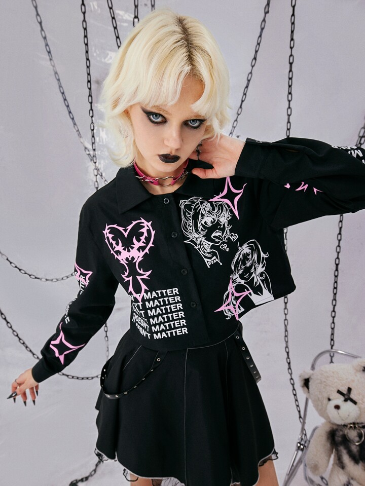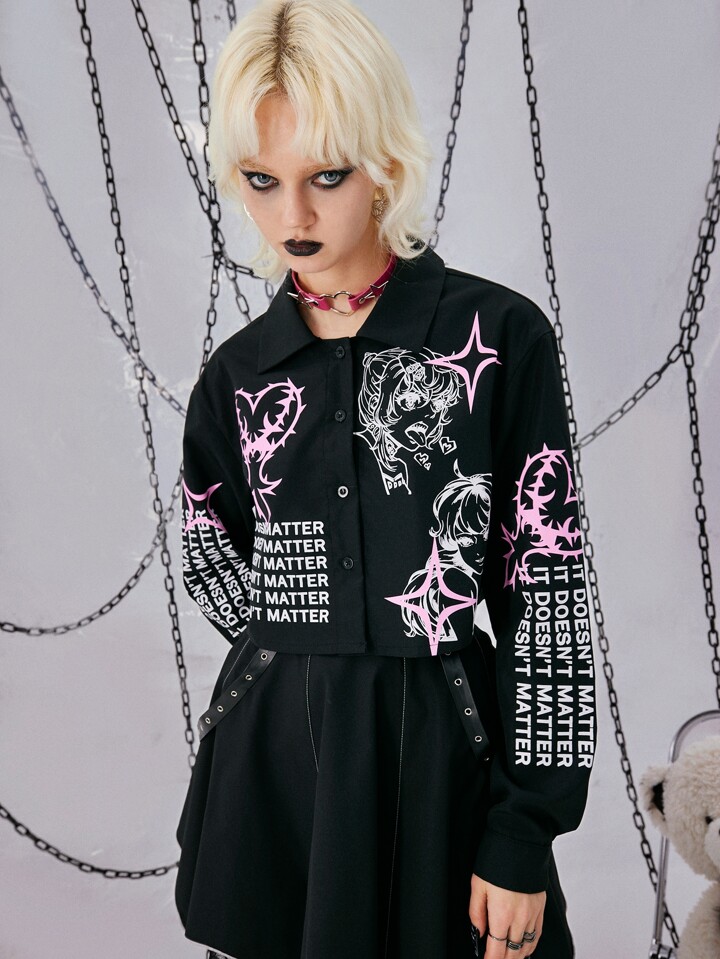 Grunge Punk Slogan & Figure Graphic Shirt