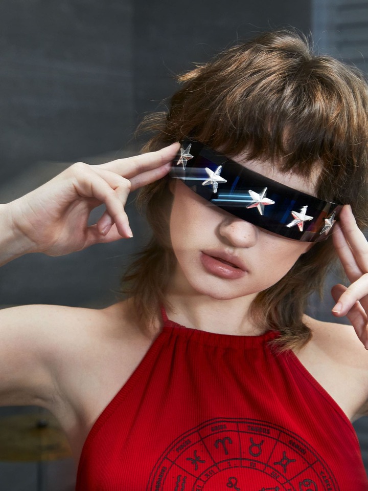 Grunge Punk Star Decor Rimless Fashion Glasses