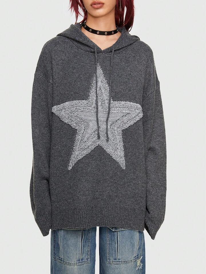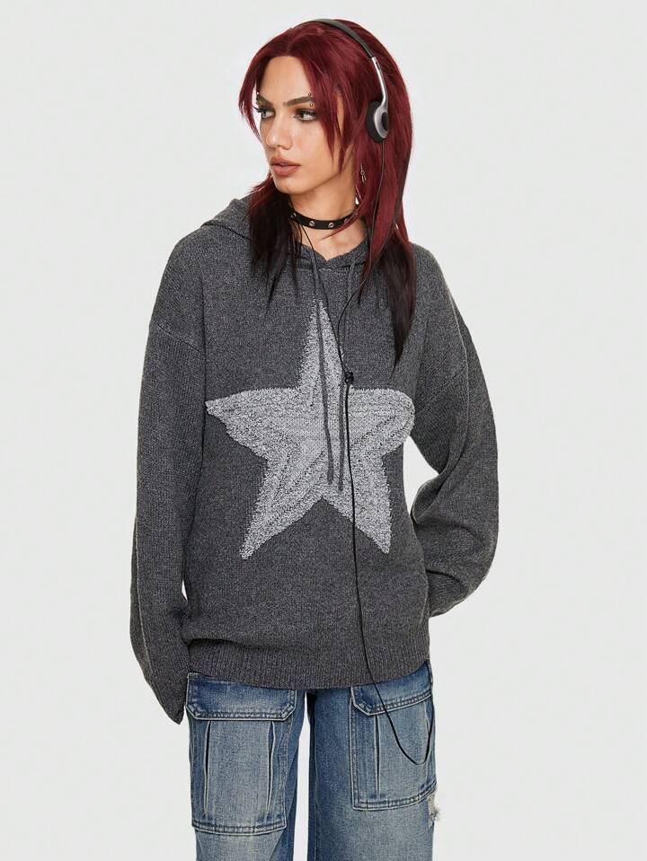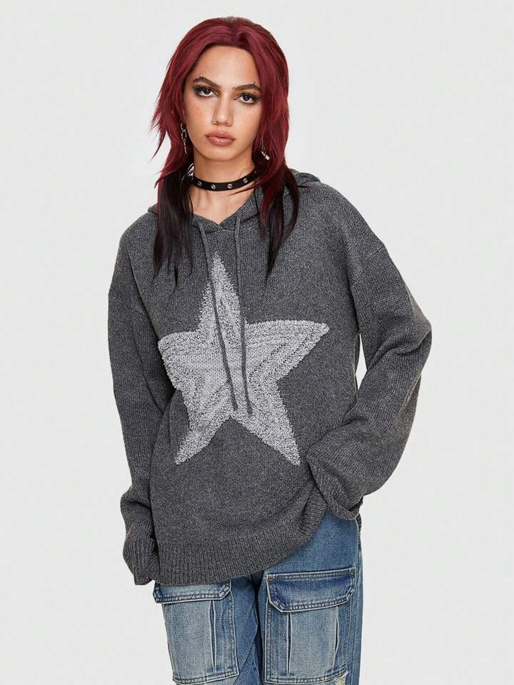 Grunge Punk Star Pattern Drop Shoulder Sweater