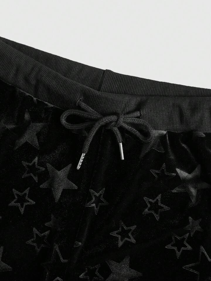 Grunge Punk Star Print Drawstring Waist Velvet Shorts