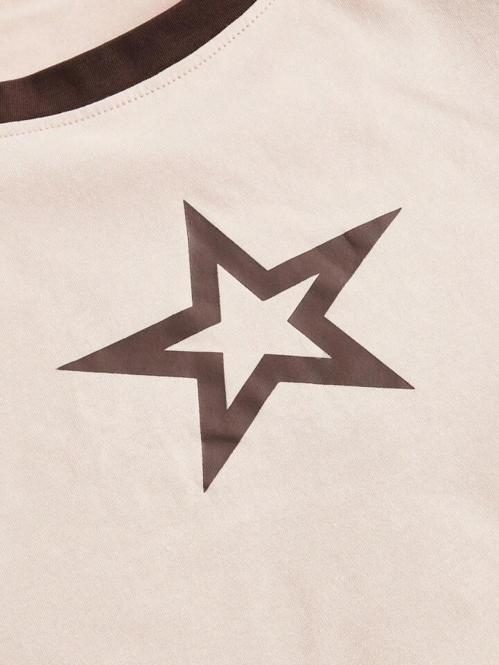 Grunge Punk Star Print Raglan Sleeve Tee