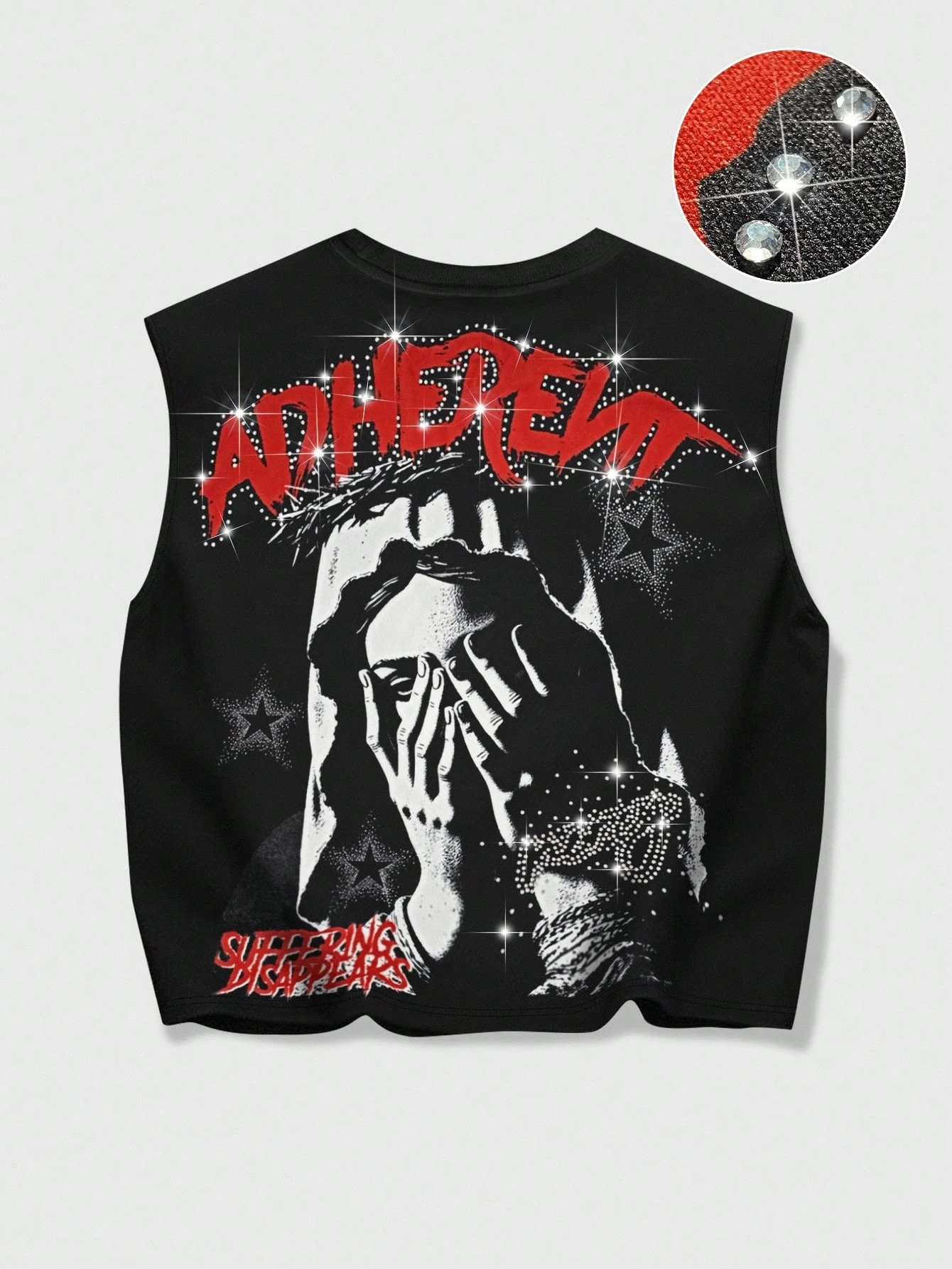Grunge Punk Streetwear Fashion Casual Rhinestone-Embellished Men's Tank Top, 2000s Style