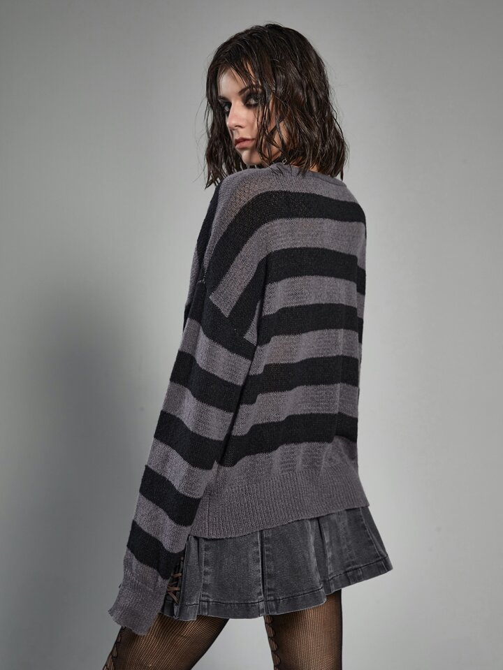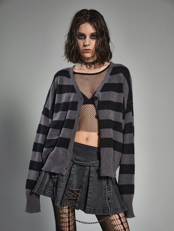 Grunge Punk Striped Pattern Drop Shoulder Cardigan