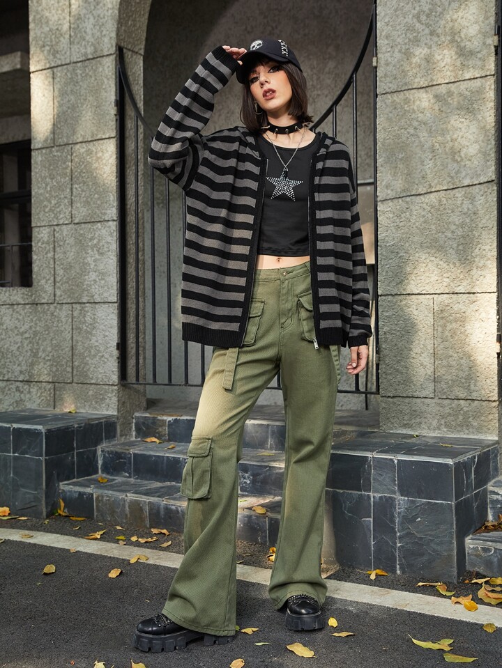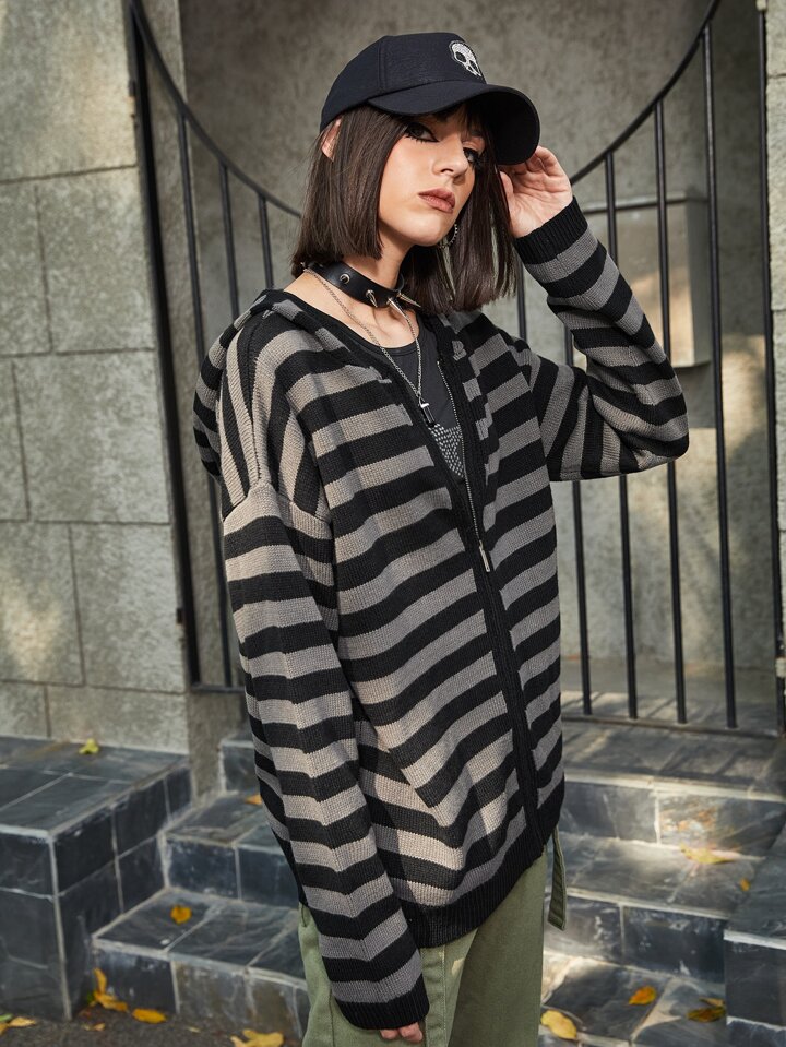 Grunge Punk Striped Zip Up Cardigan