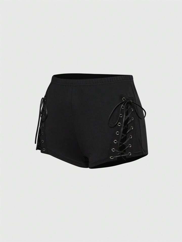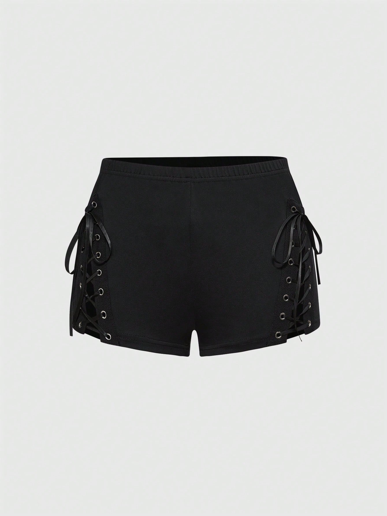 Grunge Punk Ultra Low-Waist, Super Sexy Side Lace Up Hollow Out Micro Shorts