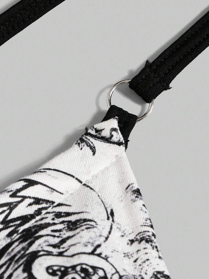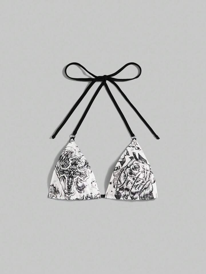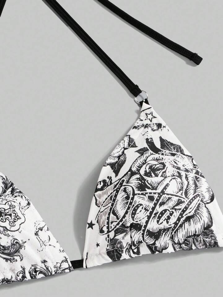 Grunge Punk Vacation Sexy Spaghetti Strap Rose Criss-Cross Bow Print Women's Camisole