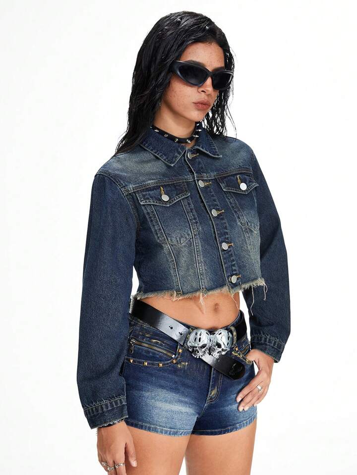 Grunge Punk Vintage Distressed PUNK Skeleton Wing Embroidery Denim Jacket
