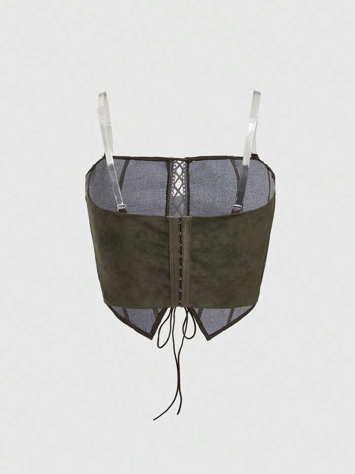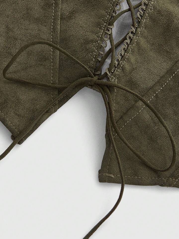 Grunge Punk Vintage Music Festival PU Sexy Distressed Lace Up Cropped Tube Top For Women