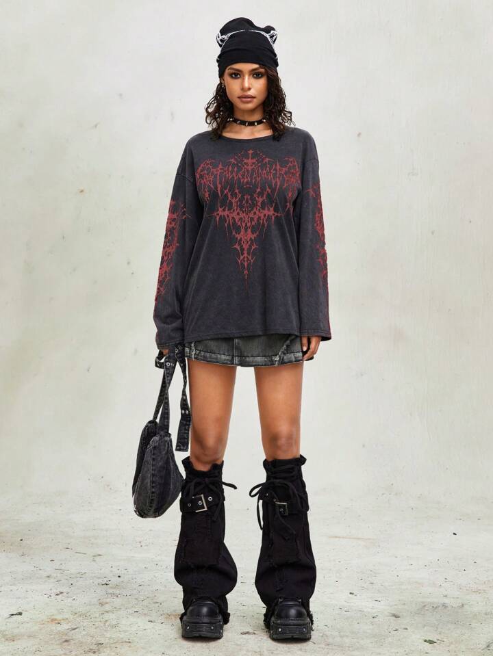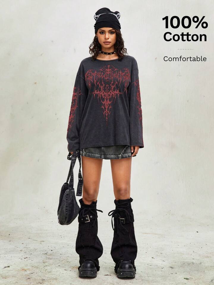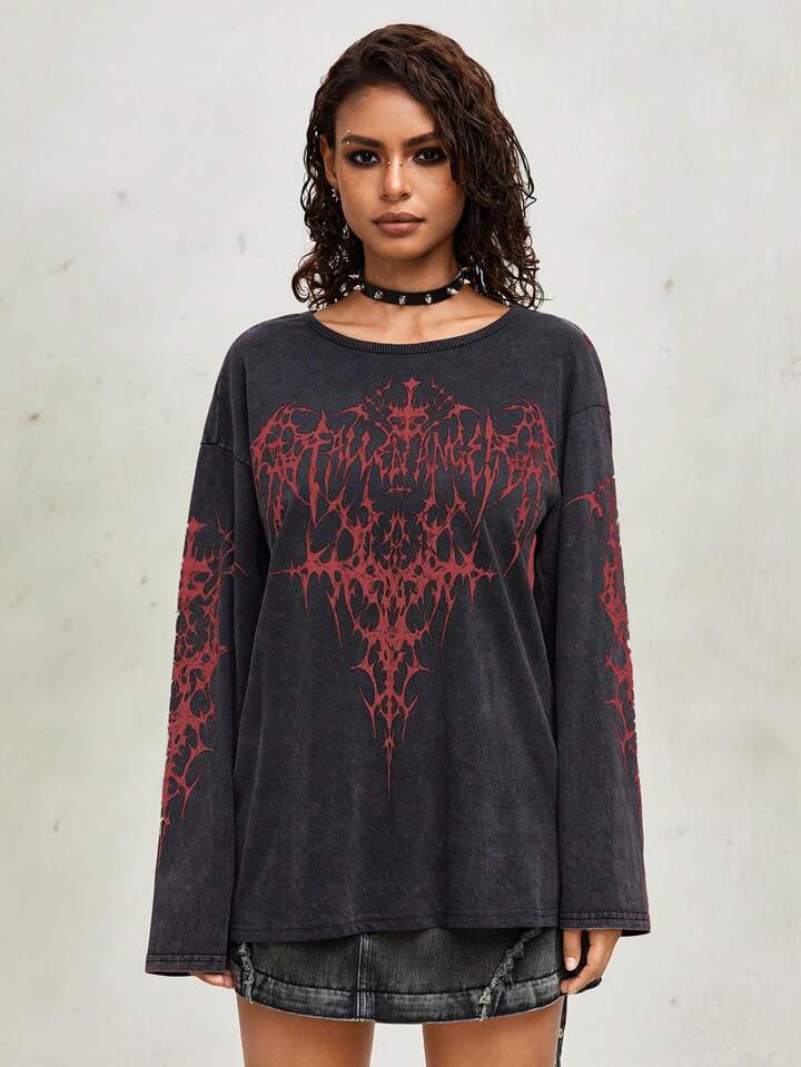 Grunge Punk Vintage Punk Random Acid Wash Effect T-Shirt