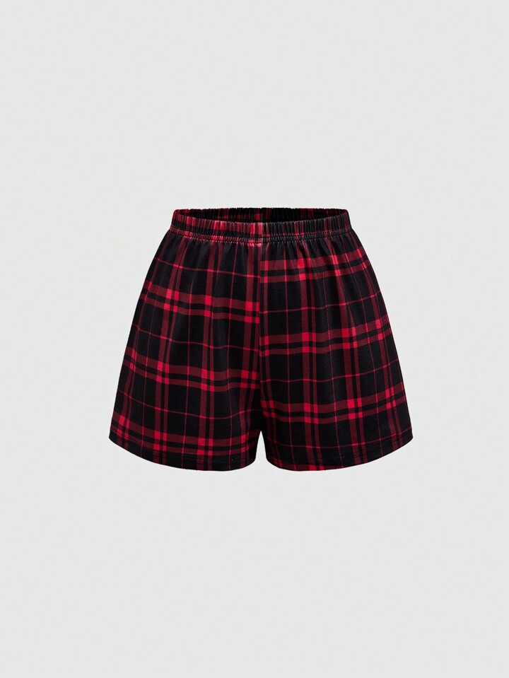 Grunge Punk Women Summer Dark Punk Font Printed Short Sleeve T-Shirt Plaid Shorts Casual Sleepwear Set
