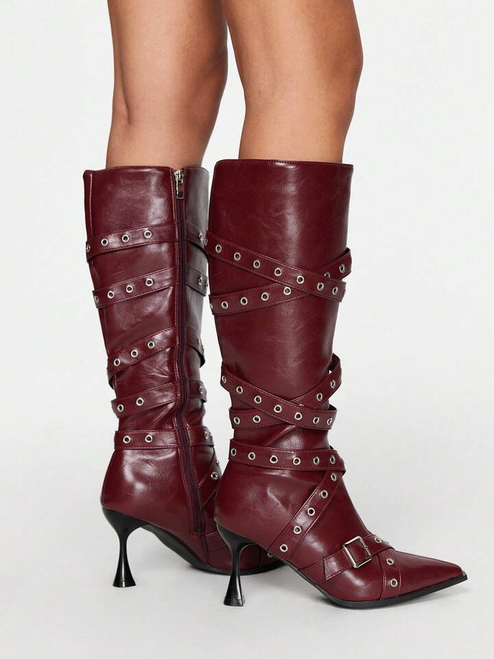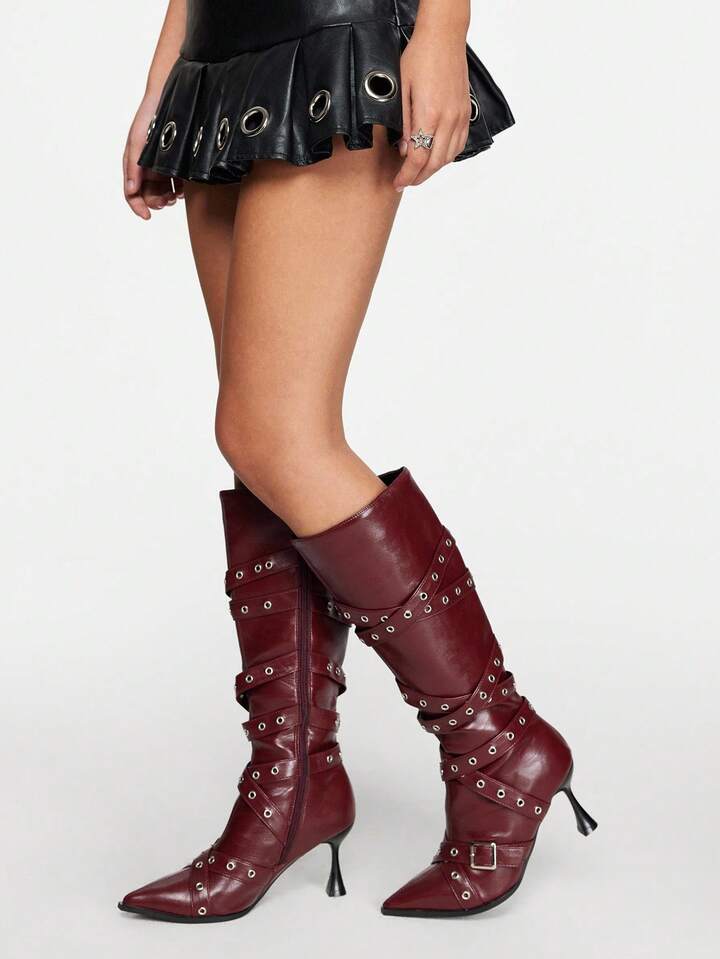 Grunge Punk Women's 2025 Autumn/Winter New Gothic Buckle Strap Pointed Toe Fashion Mid-Calf Boots