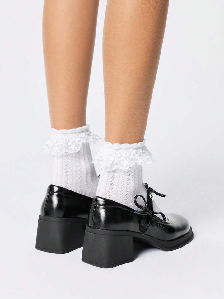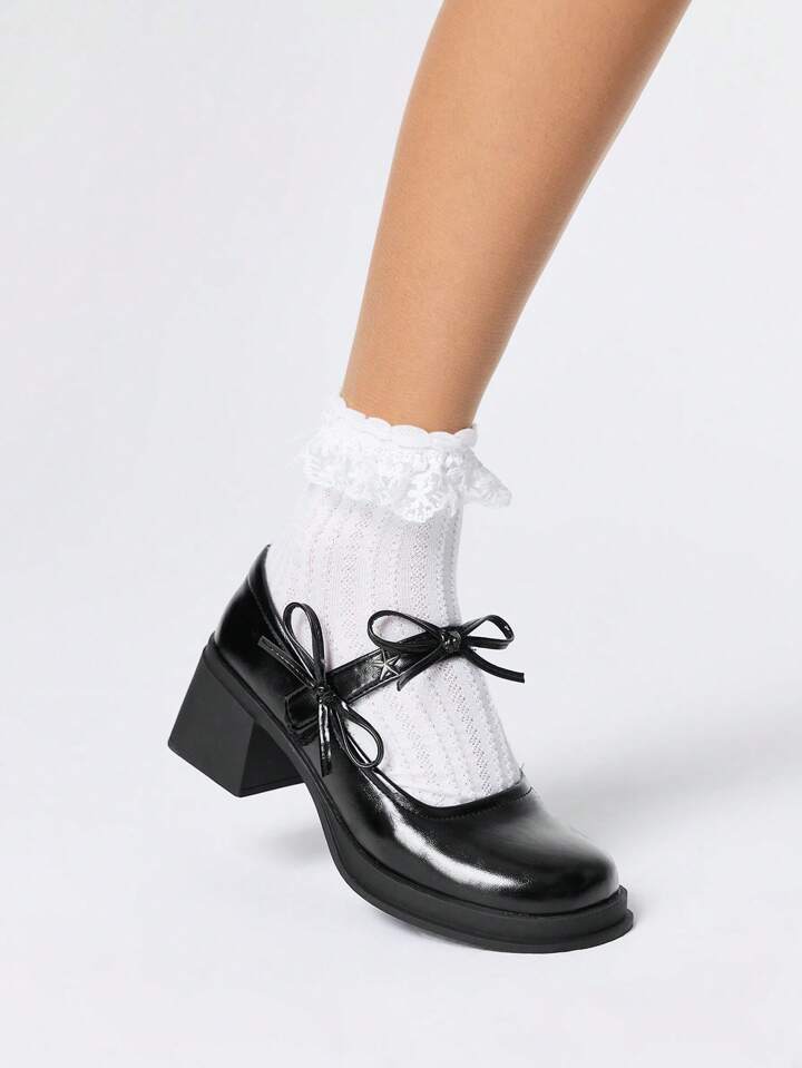 Grunge Punk Women's 2025 Spring Autumn Black PU Mary Jane Shoes, Bowknot Platform Thick High Heel Pumps