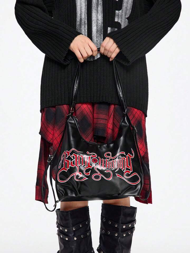 Grunge Punk Women's Black Punk Game Winning Shoulder Bag, Versatile Carrying