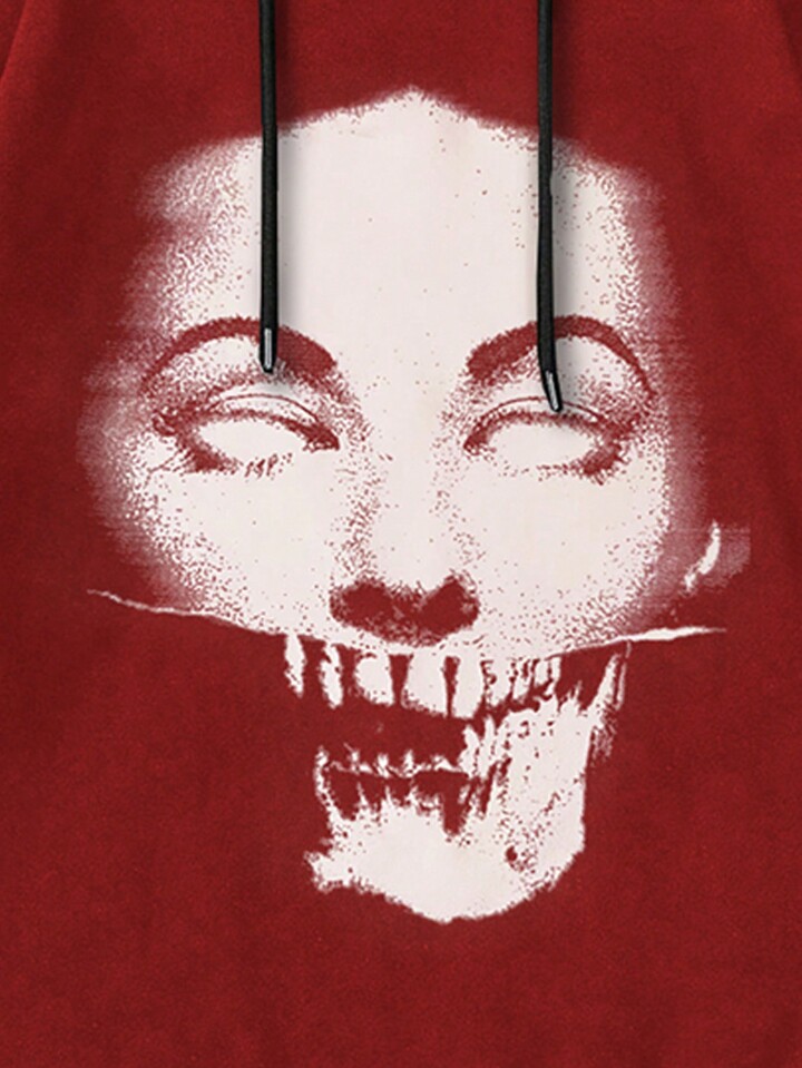 Grunge Punk Women's Character Print Fleece Hoodie With Drawstring