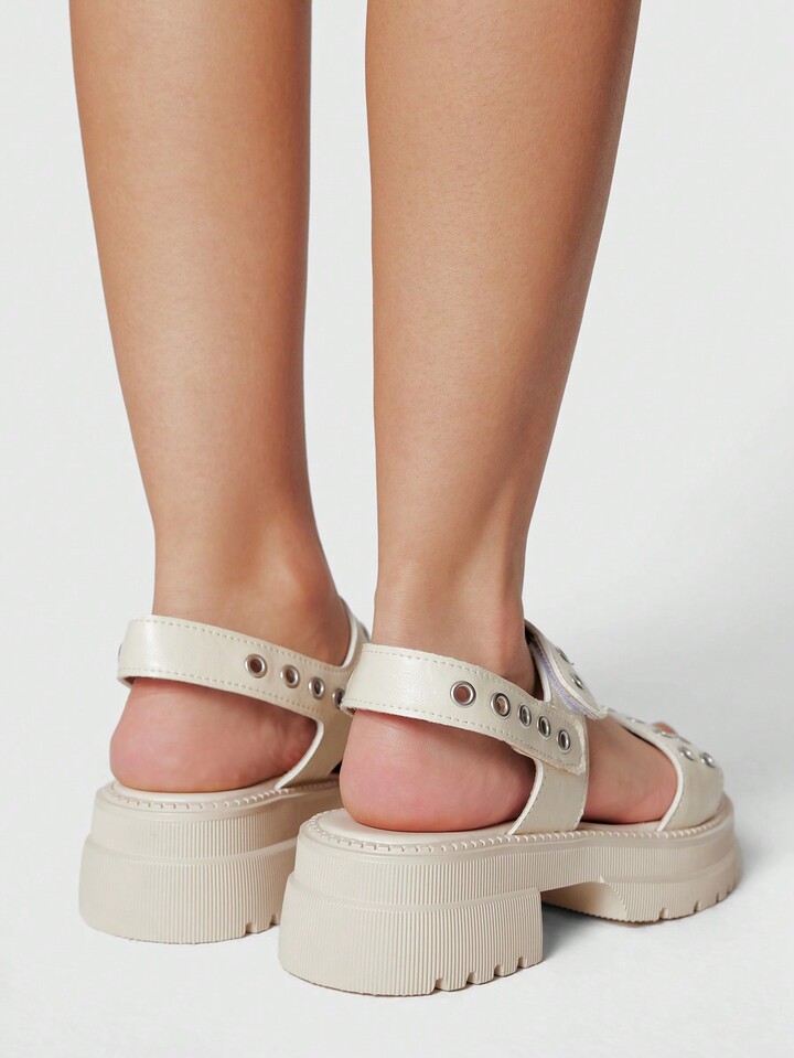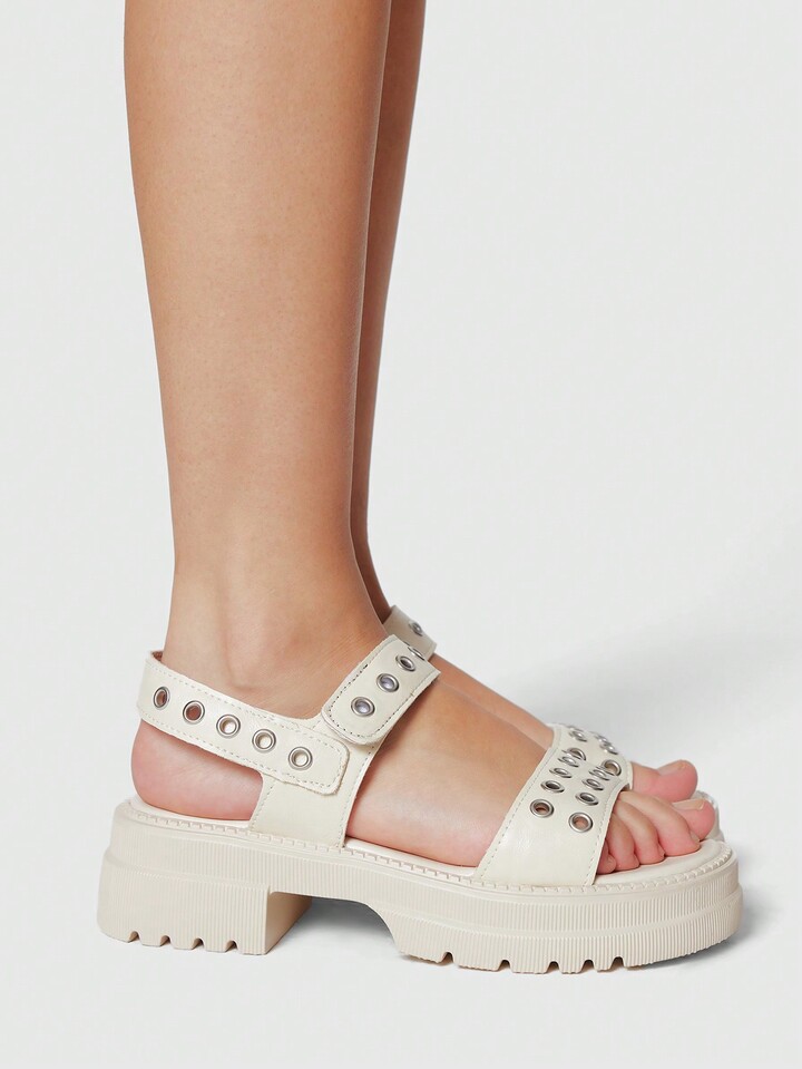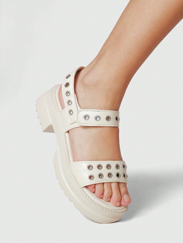 Grunge Punk Women's Dark Gothic Punk Rock Style Strap Rivet Sandals, Open Toe Roman Beach Vacation Soft Sole Wedge Platform Sandals, Halloween