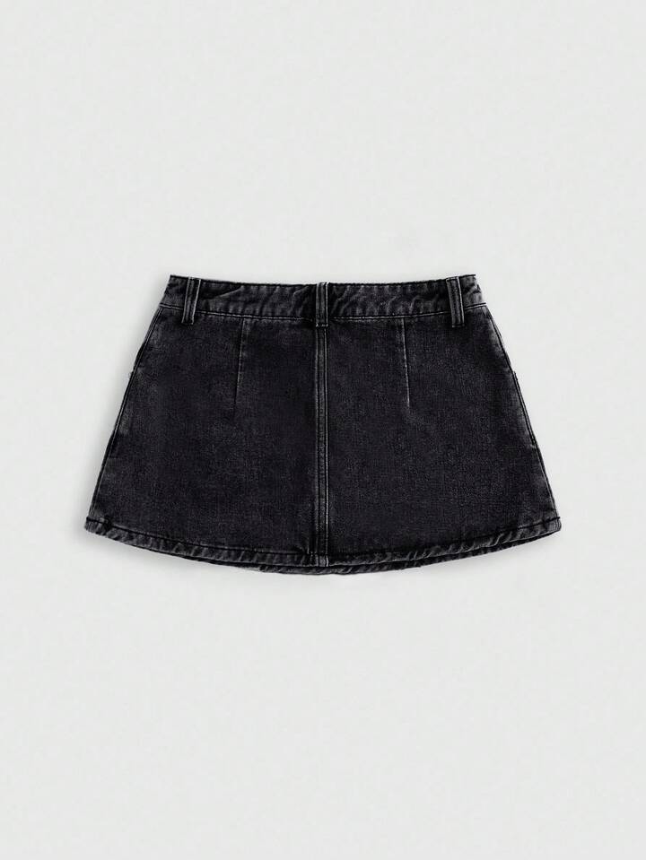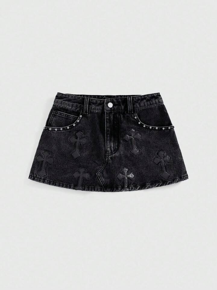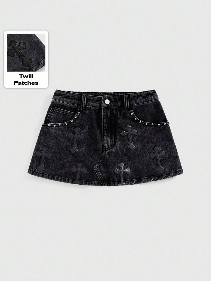 Grunge Punk Women's Embroidered Cross Denim Mini Skirt