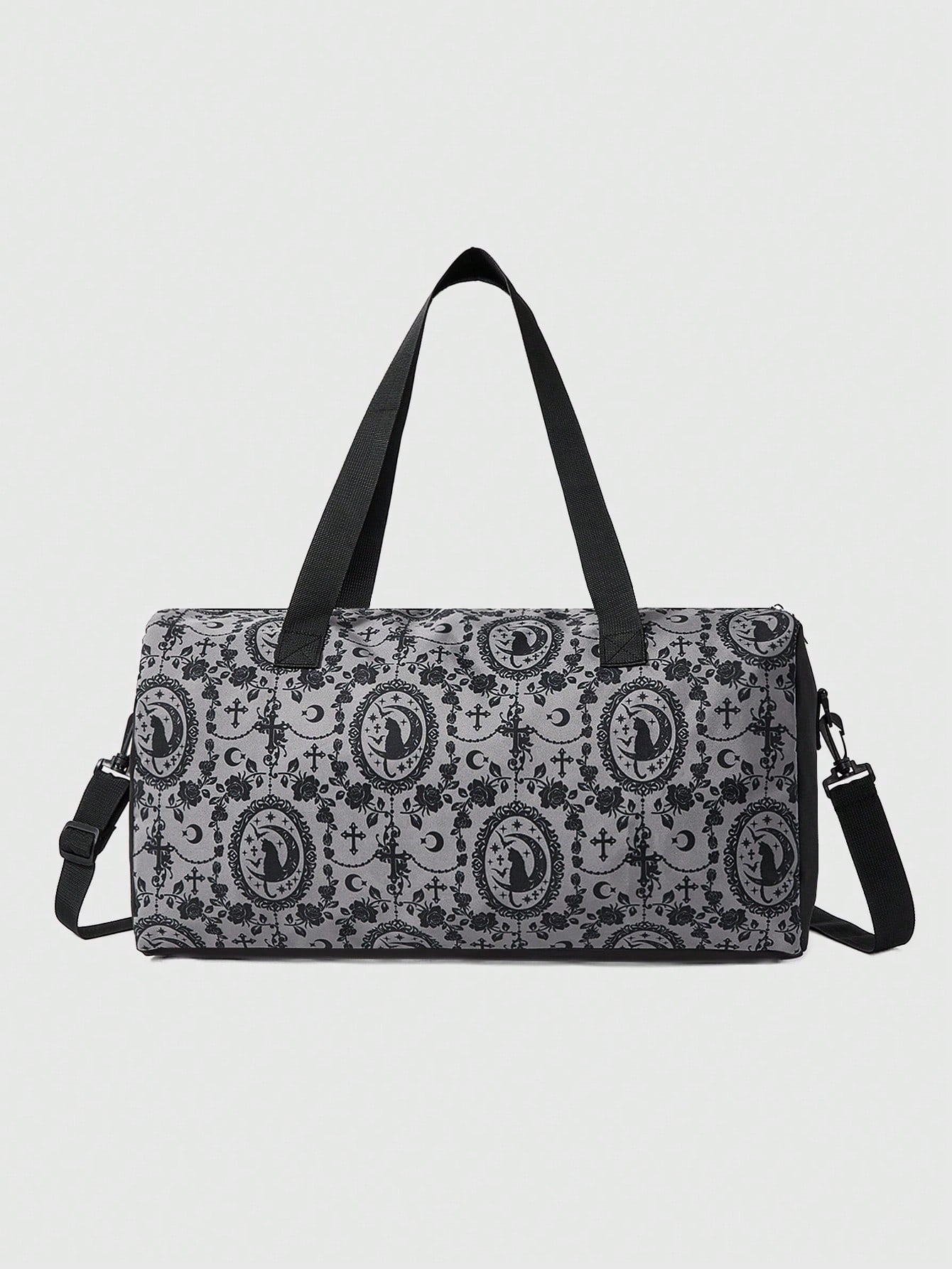 Grunge Punk Women's Fashion Starry Sky Cat & Flower Pattern Tote Bag
