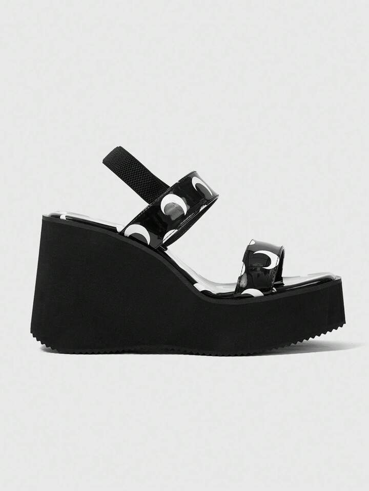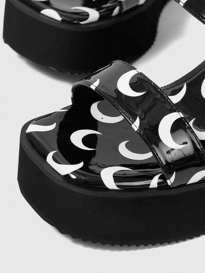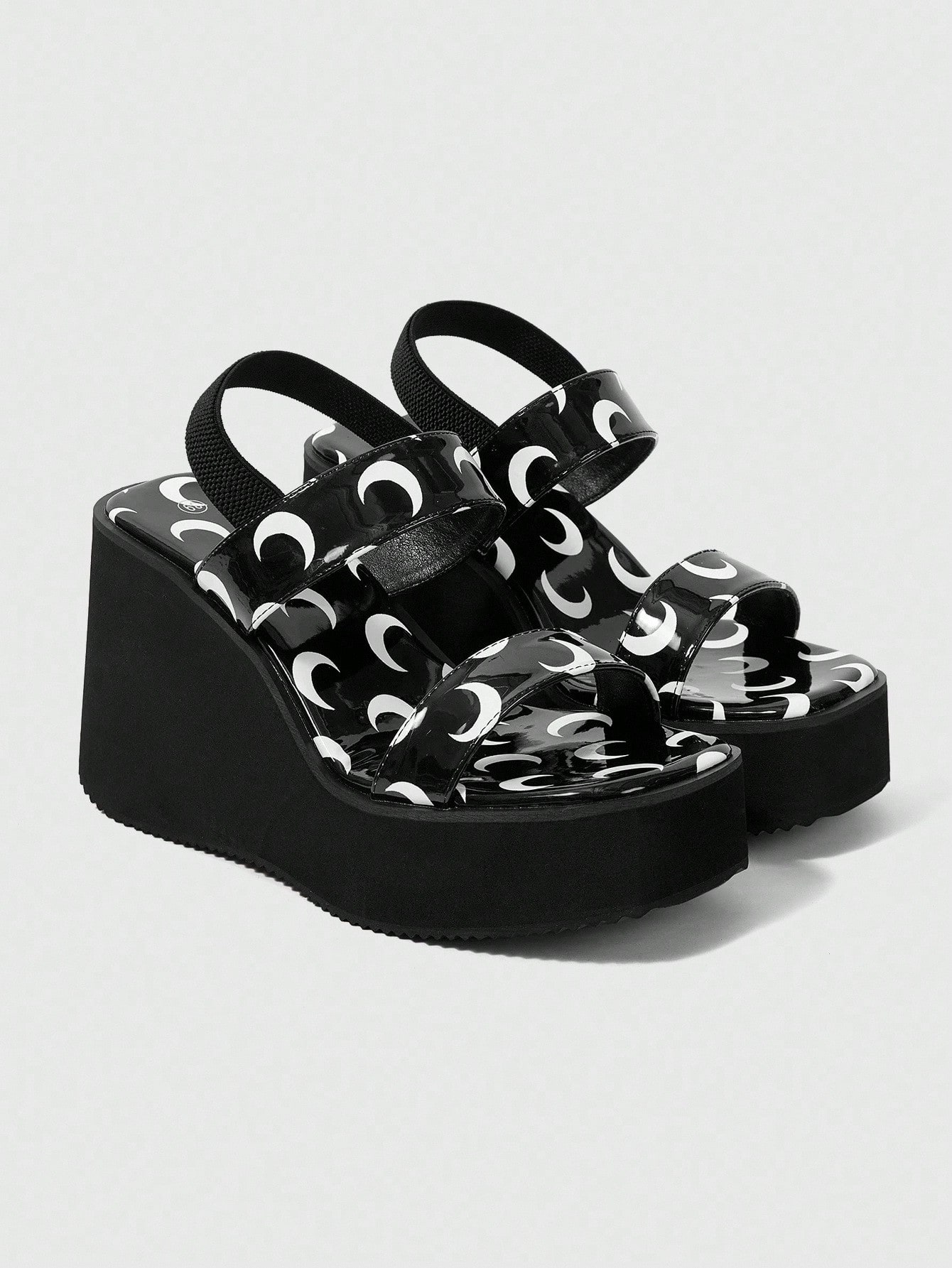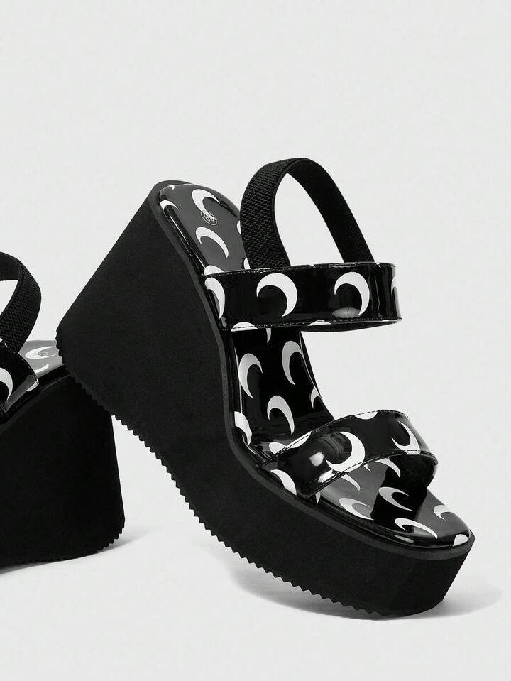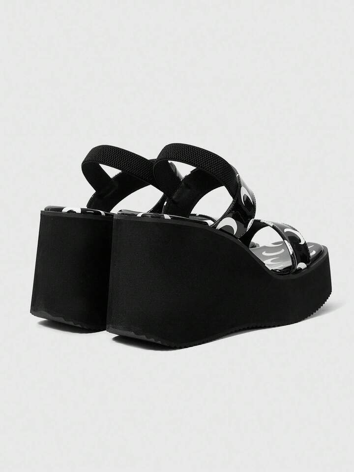 Grunge Punk Women's Fashion Versatile Increase Height Square Toe High 10cm Roman Style Black High Heel Thick Sole Sandals