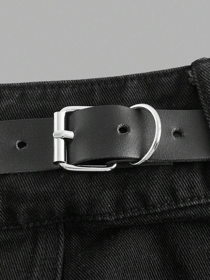 Grunge Punk Women's Fashionable Denim Skirt With Black Chain Decorated Waist Belt