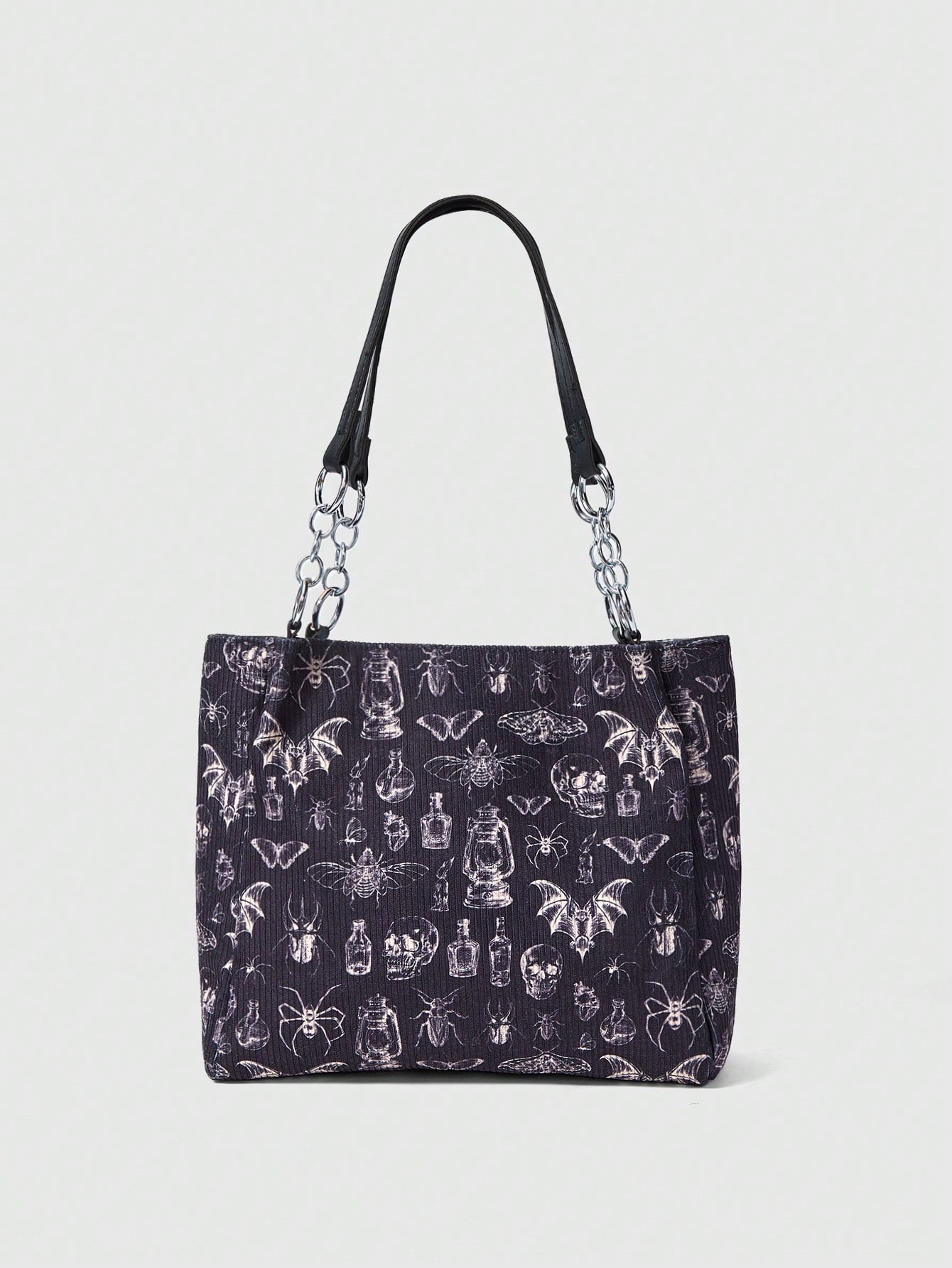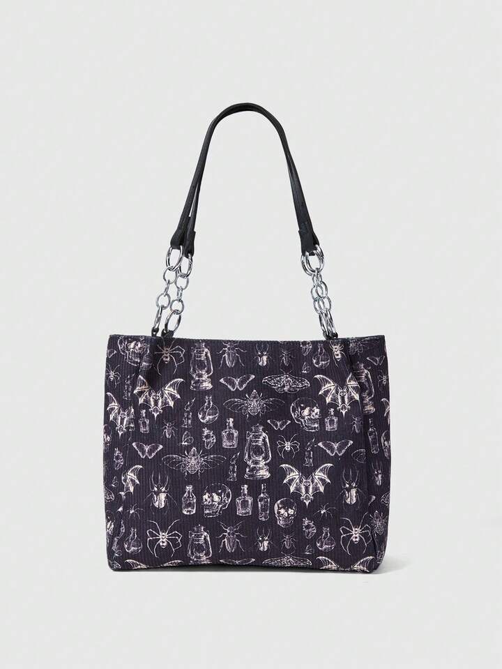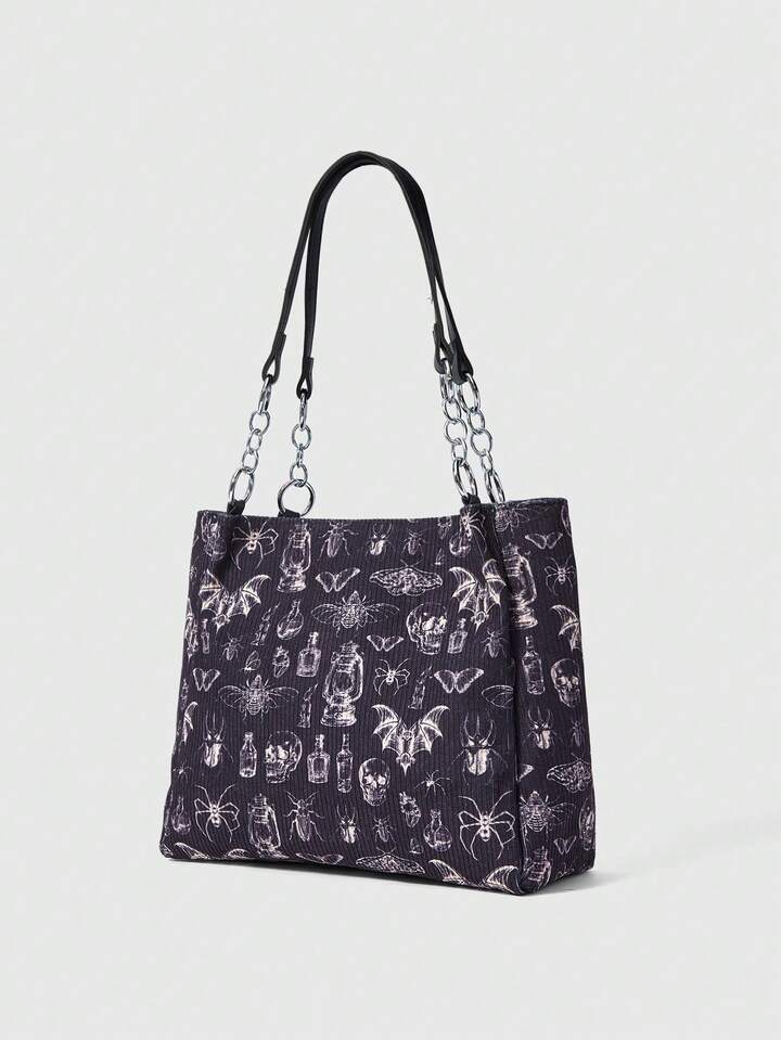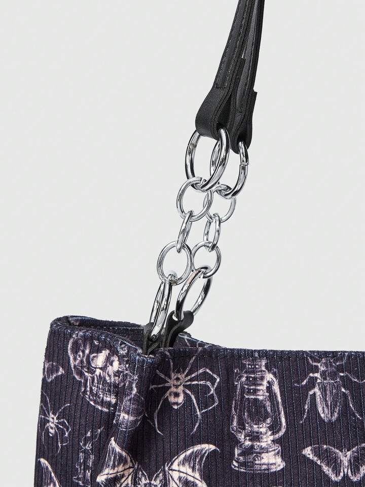 Grunge Punk Women's Fashionable Large Capacity Bat Pattern Shoulder Bag