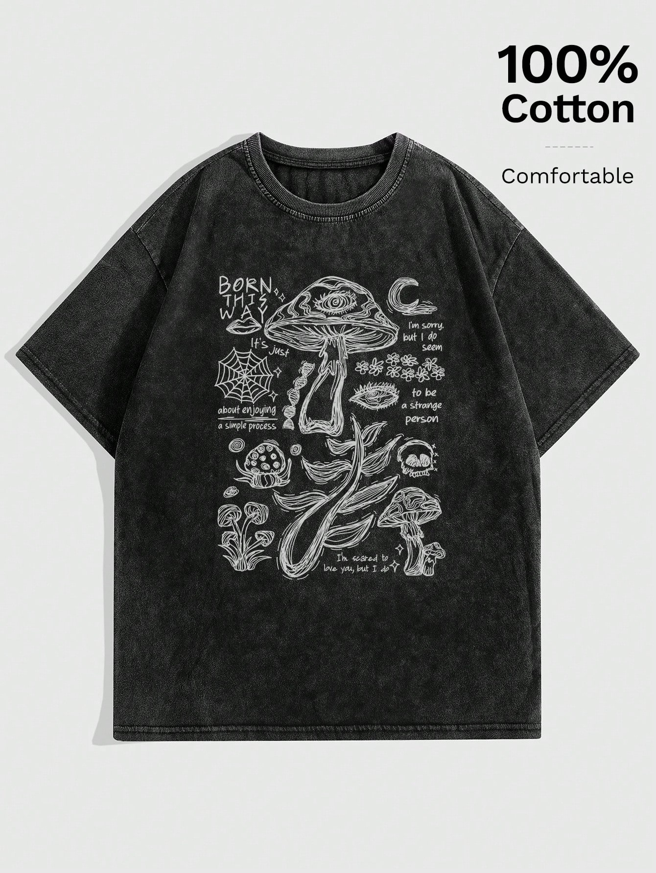 Grunge Punk Women's Gothic Vintage Distressed Mushrooms, Spider Web, Text Pattern Printed Tie Dye Loose Fit T-Shirt, Streetwear Style, School
