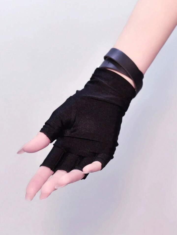 Grunge Punk Women's Gothic Y2k Style Black Fingerless Short Gloves, Halloween