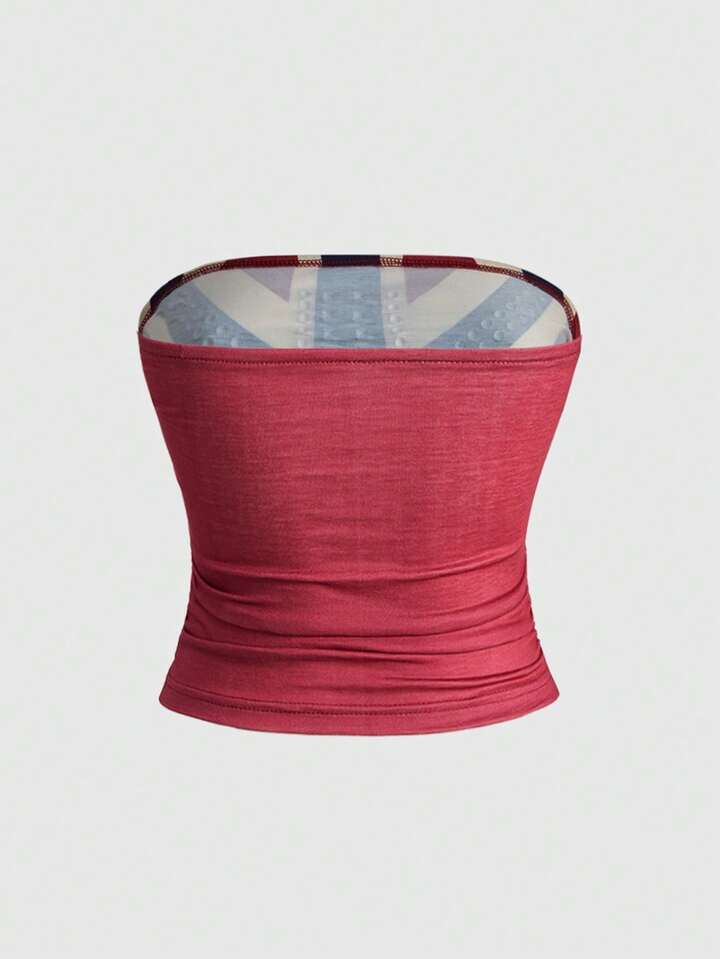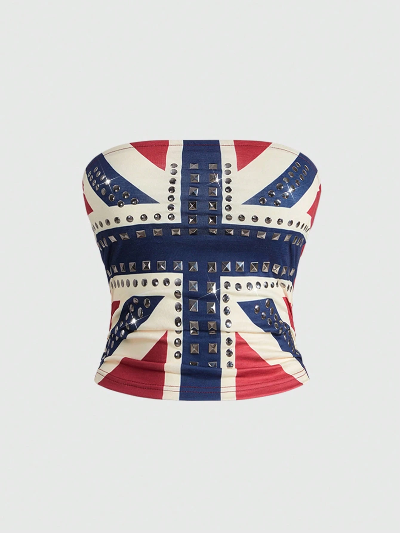 Grunge Punk Women's Kpop Y2K Vintage UK Flag Print Rhinestone Rivet Embellished Top