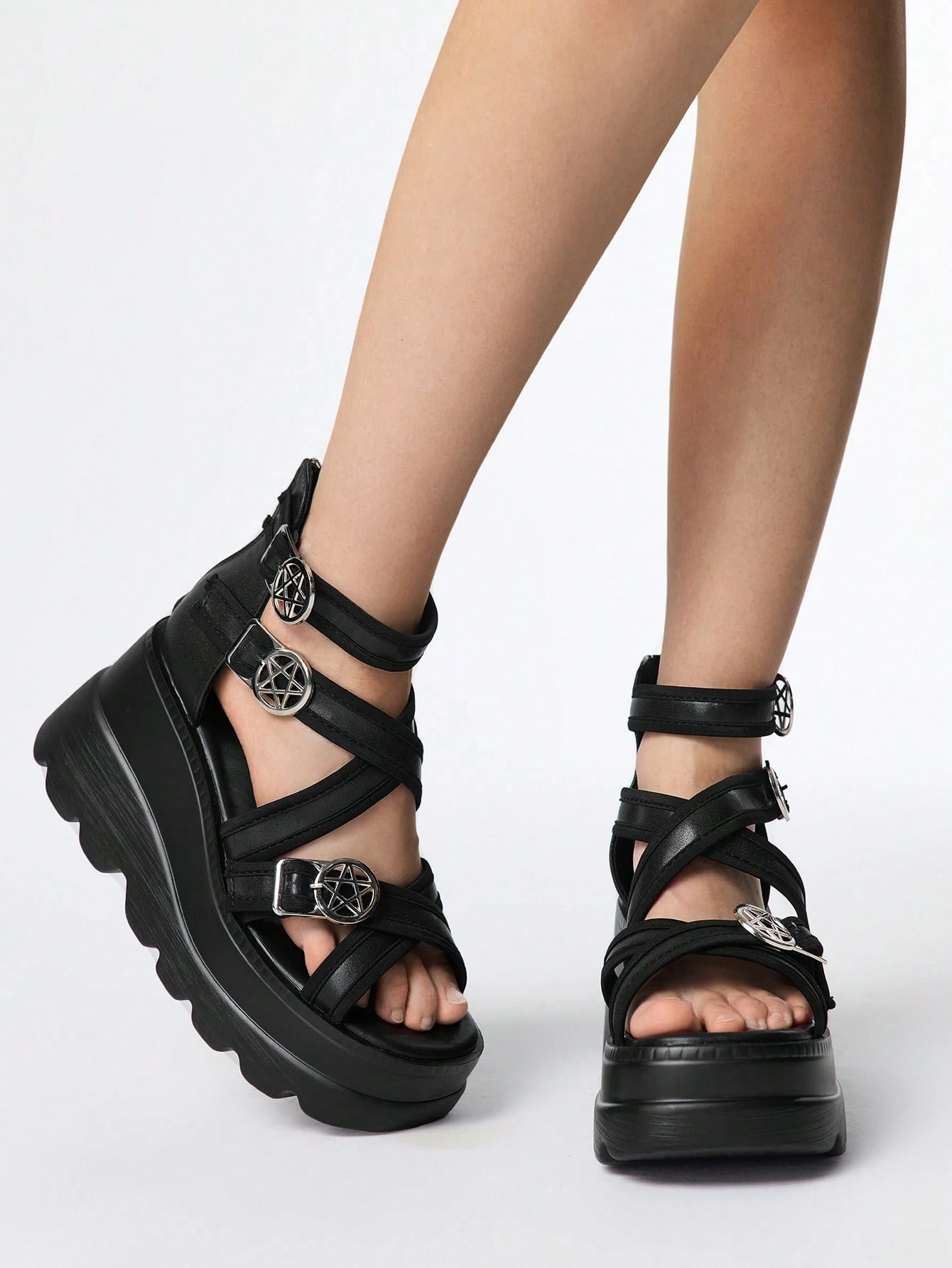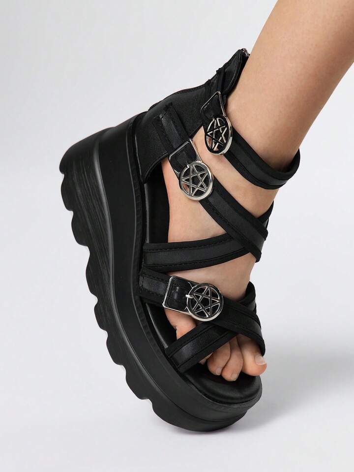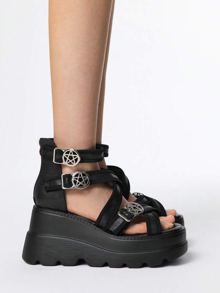Grunge Punk Women's Platform Wedge Heel Gothic Punk Heart Buckle Fashion Roman Sandals