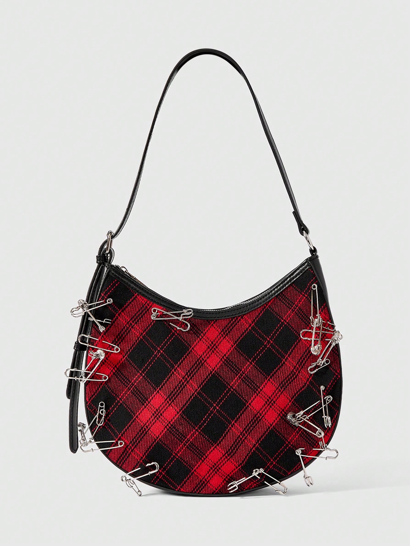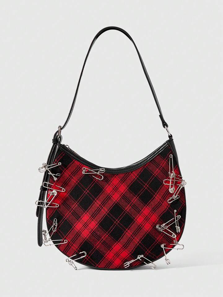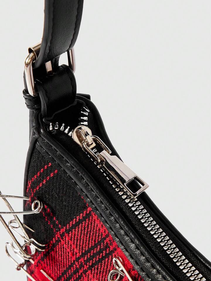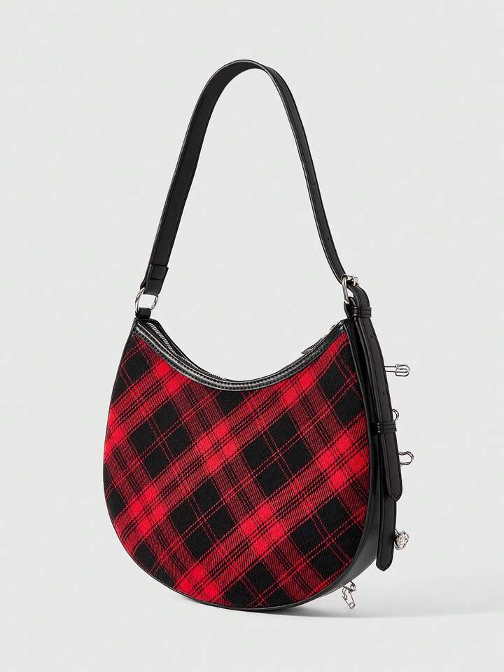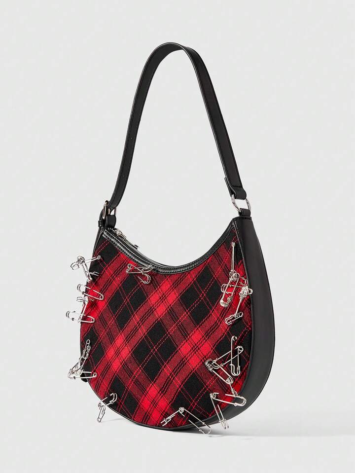 Grunge Punk Women's Punk Style Plaid Brooch Design Fashion Shoulder Bag