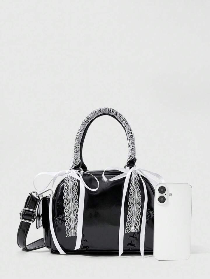 Grunge Punk Women's Retro Bowling Handbag For Daily Use
