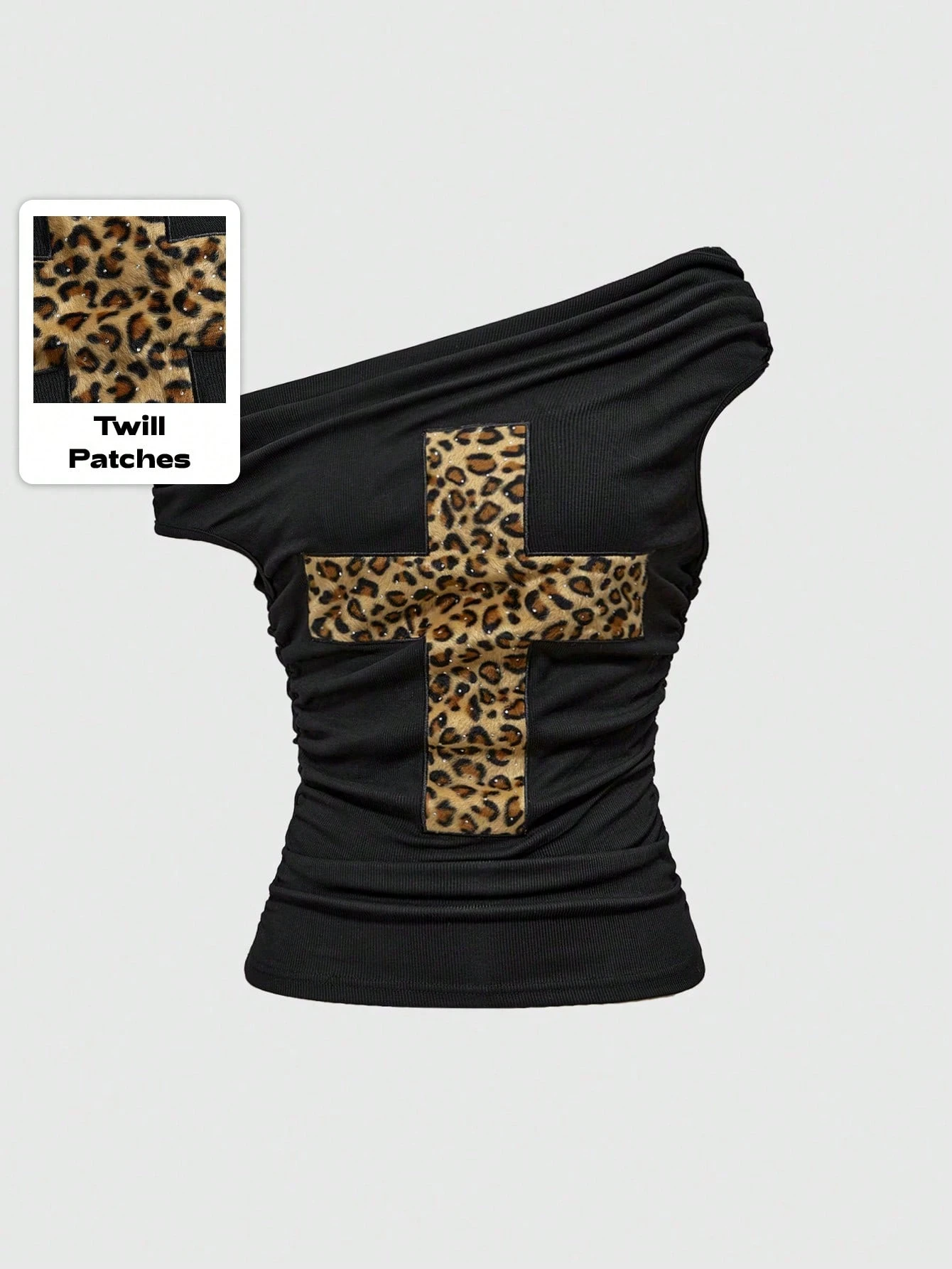 Grunge Punk Women's Sexy Leopard Print Cross Patch Asymmetrical Neck Form-Fitting T-Shirt