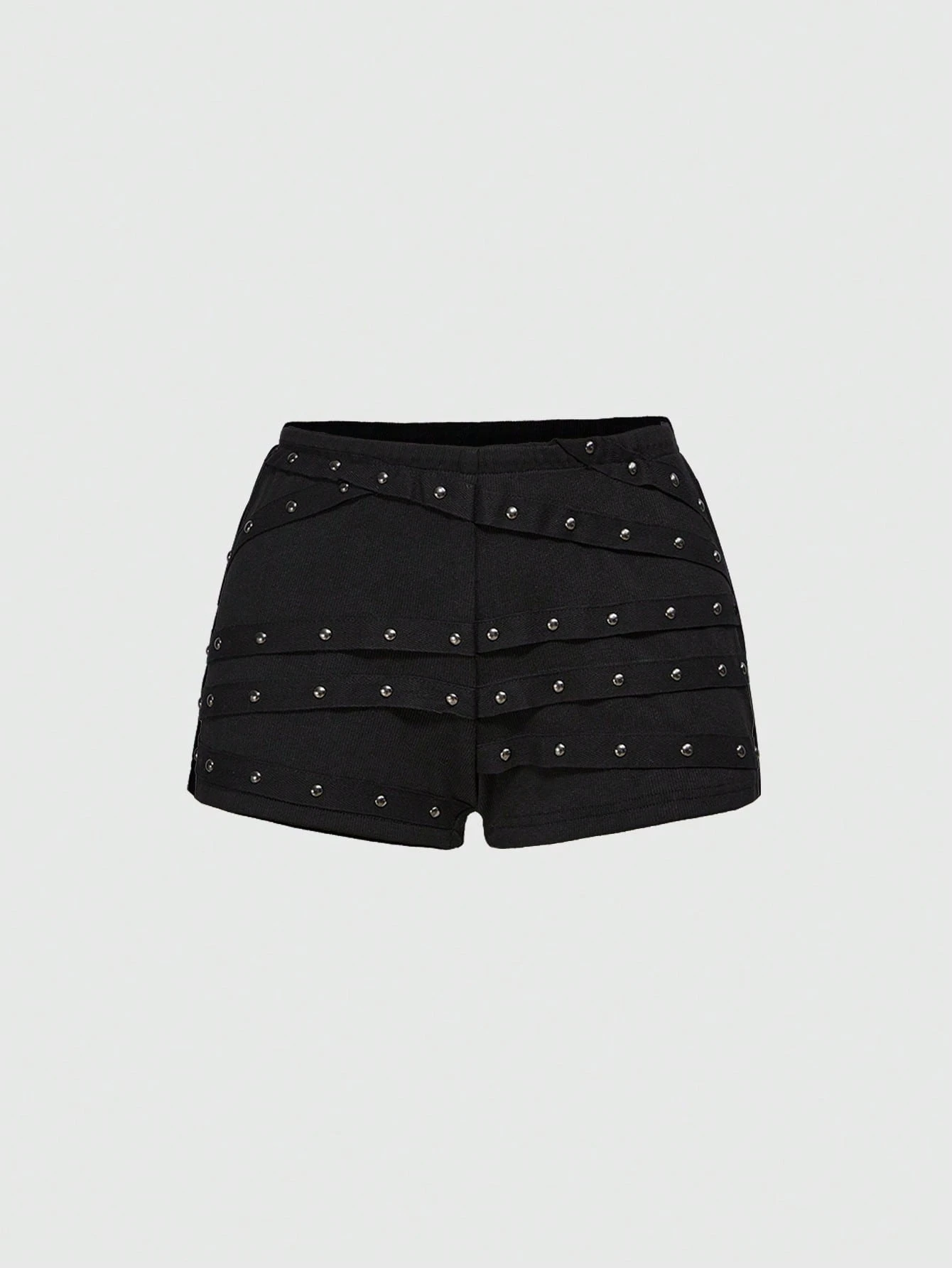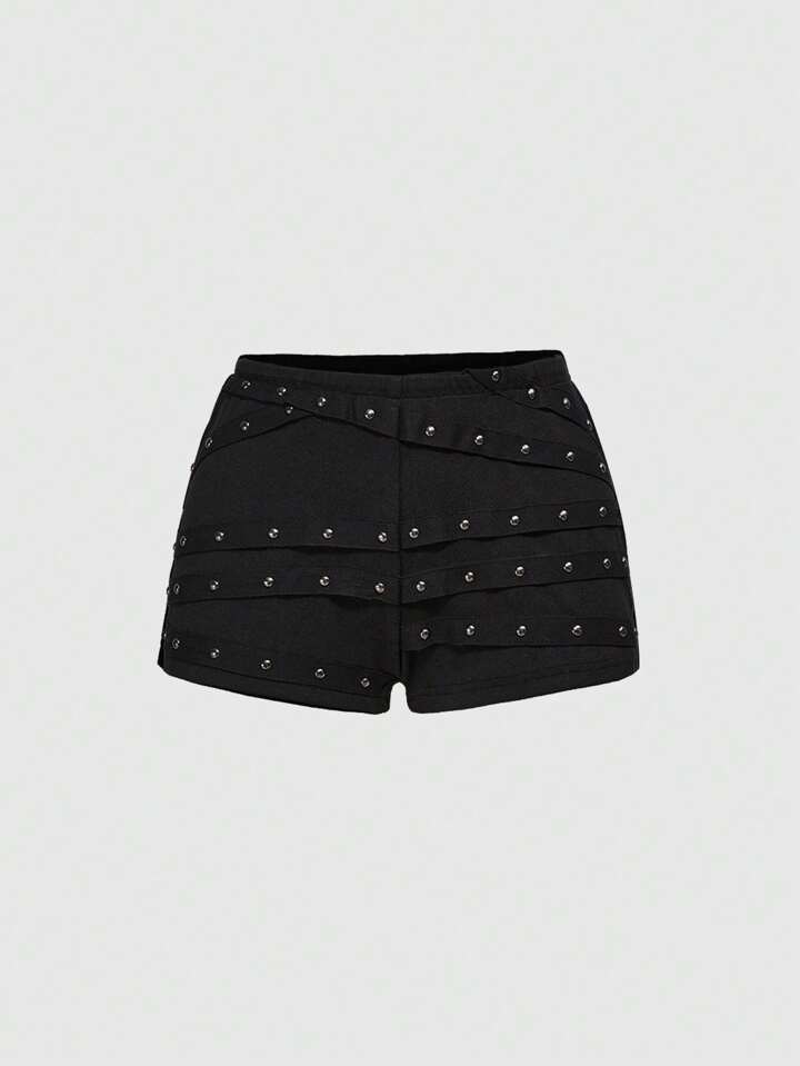 Grunge Punk Women's Sleeveless Sexy Backless Vest With Rivet/Rhinestone Embellishment, V-Neck Design, Suitable For Summer Beach, Graduation, Easter, Concerts, Nashville Vacation, Music Festivals